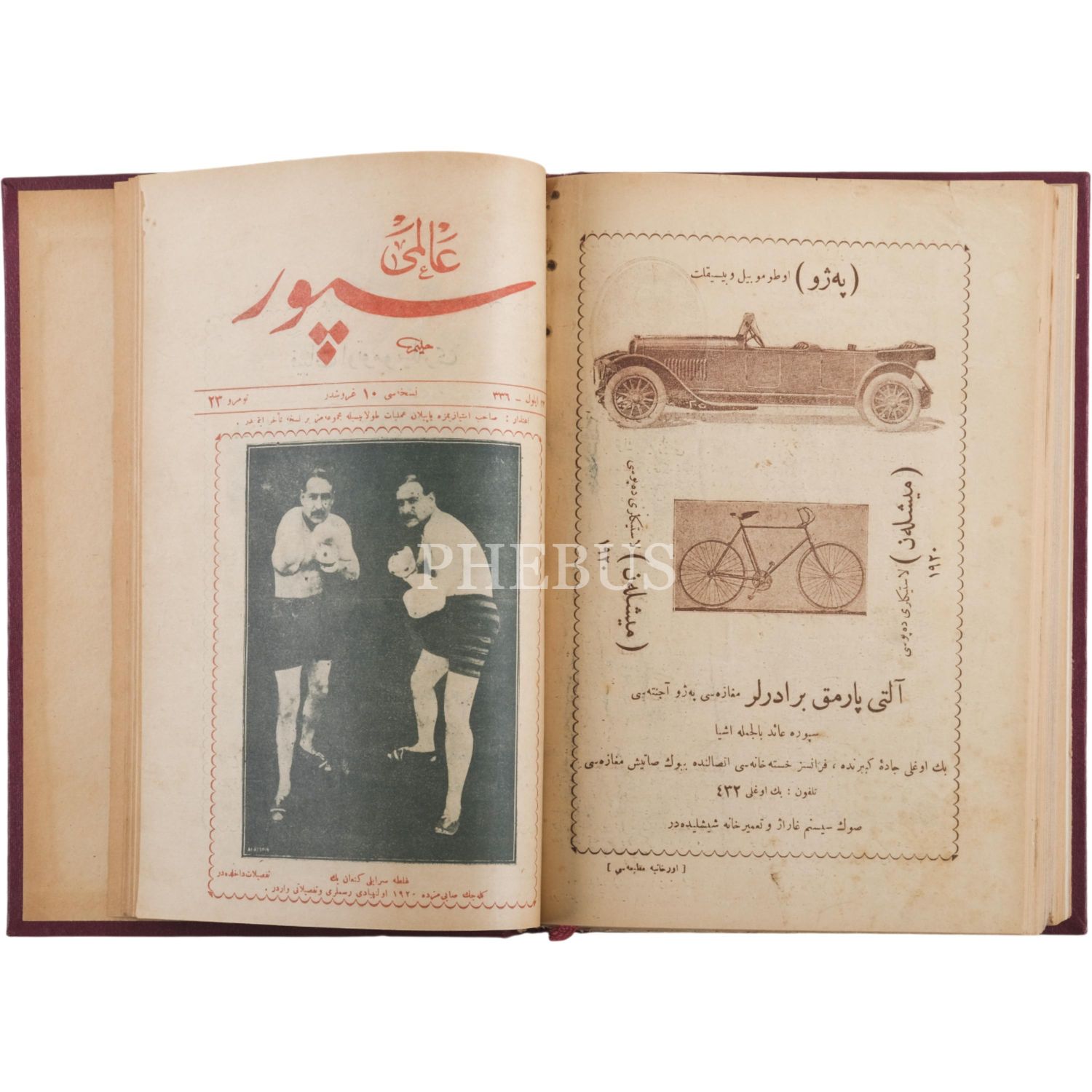 Türkiye´nin ilk spor sunucusu Sait Çelebi tarafından çıkarılan SPOR ALEMİ dergisinin Kasım 1919 ila Şubat 1926 tarihleri arasında yayımlananan 214 sayısı (7 Cilt), 20x29 cm...