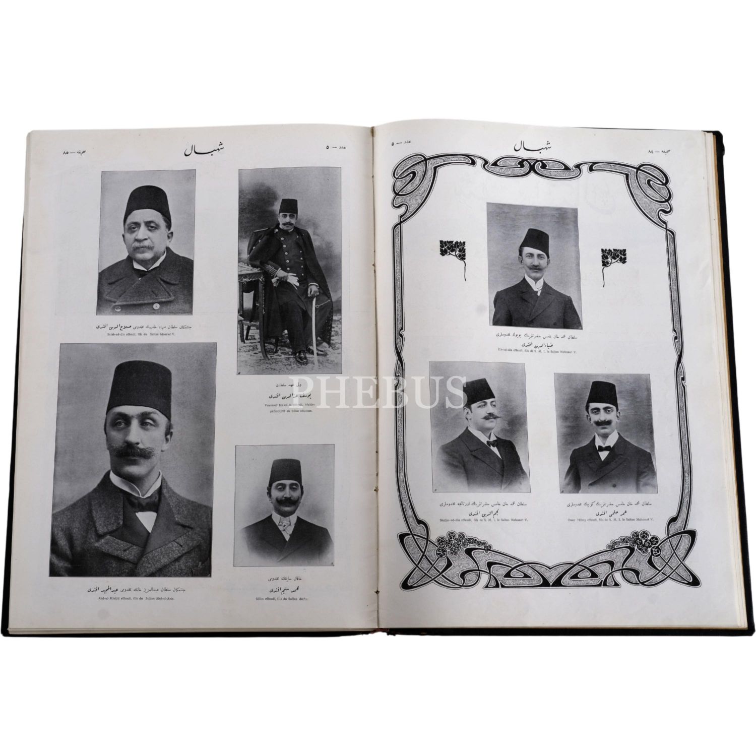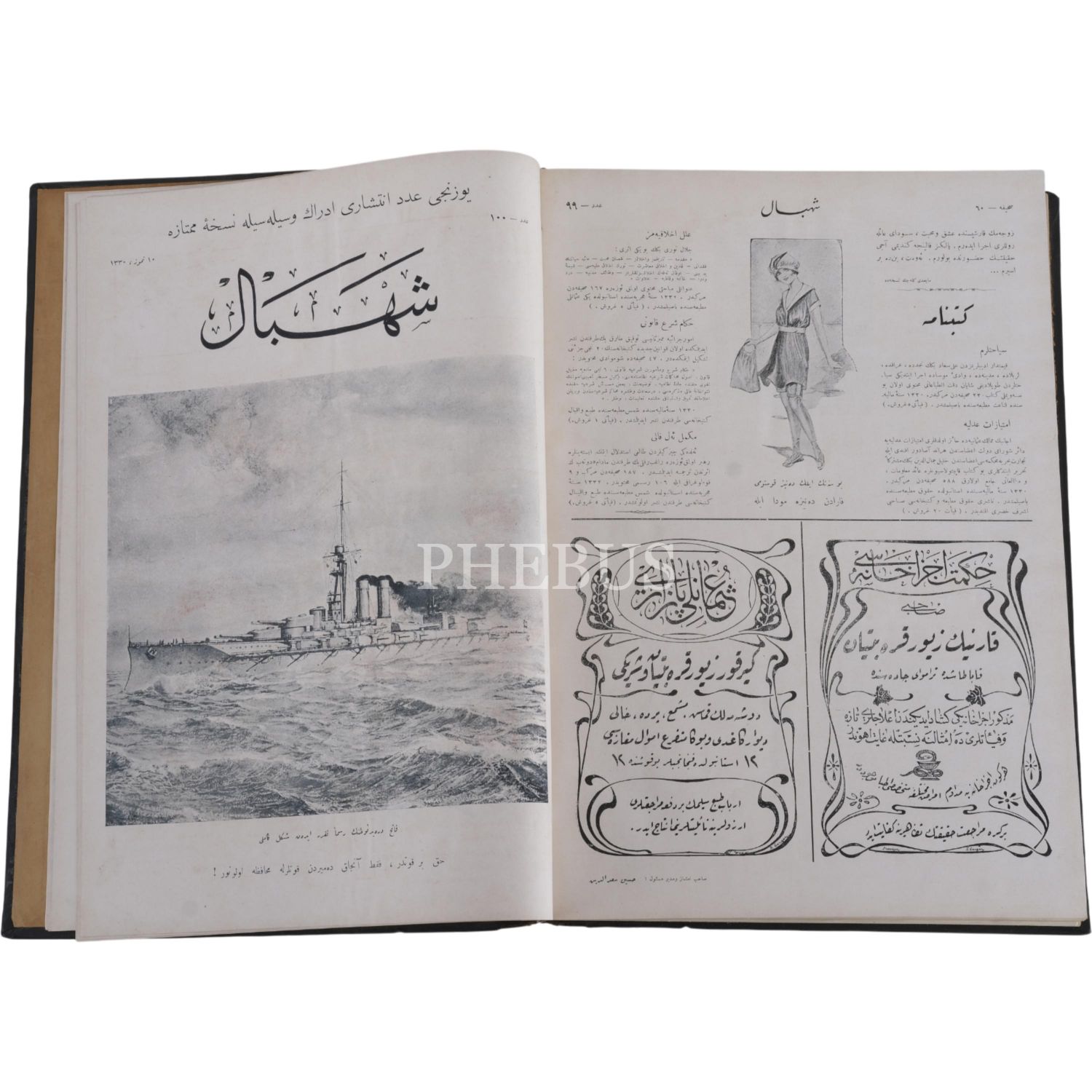 ŞEHBAL dergisinin 100 sayıdan oluşan takımı, 5 cilt, 1909-1914, 484+460+480+480&80 sayfa, 28x40 cm...