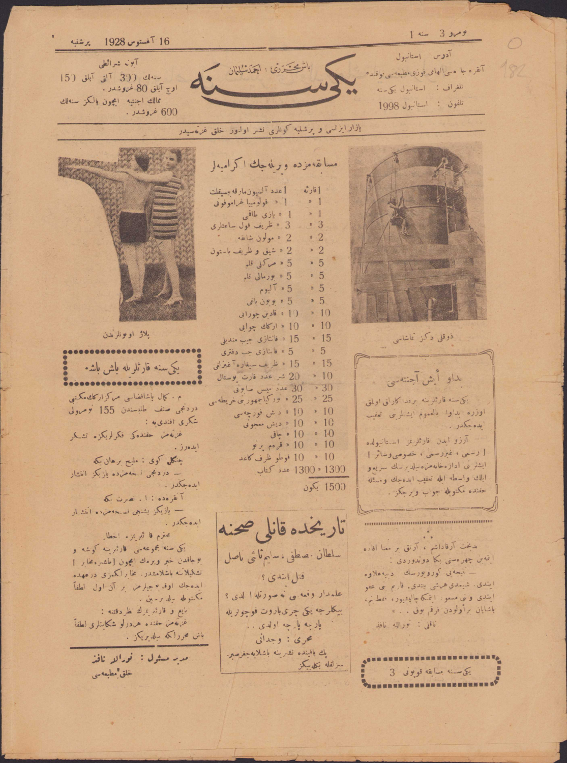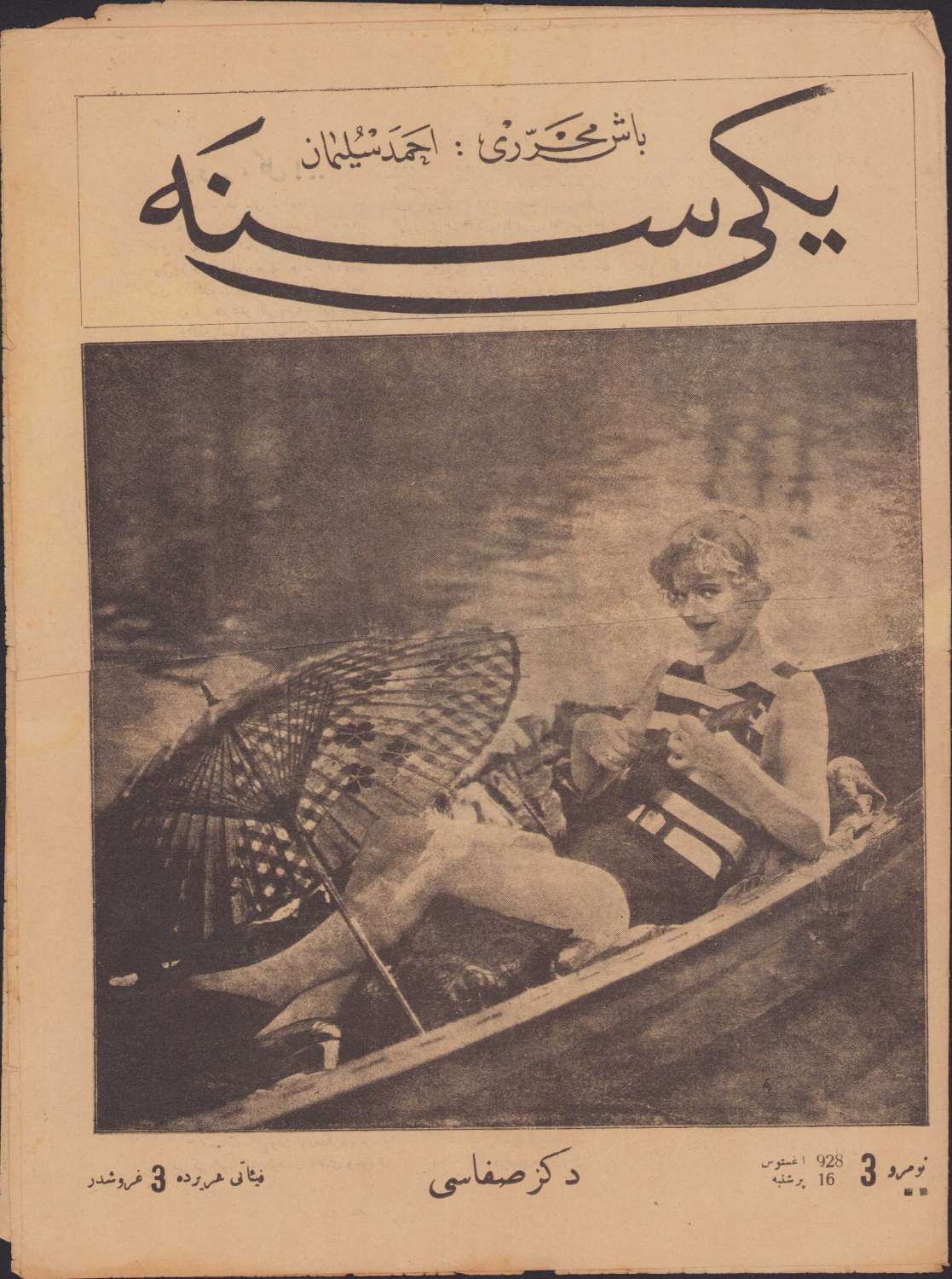Yeni Sene dergisi, kadın deniz kapaklı, Osmanlıca , 1928 tarihli, başmuharriri Ahmet Süleyman, 7 sayfa