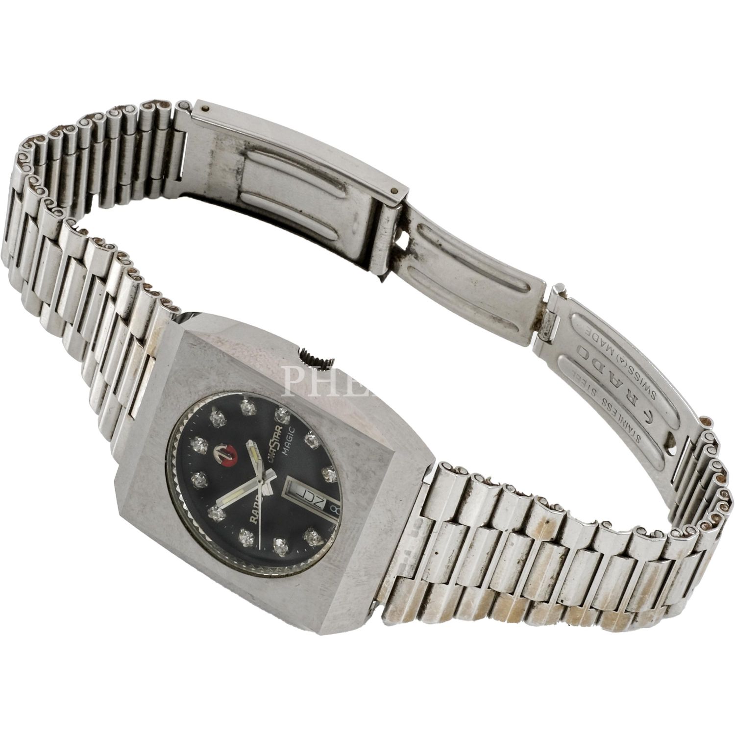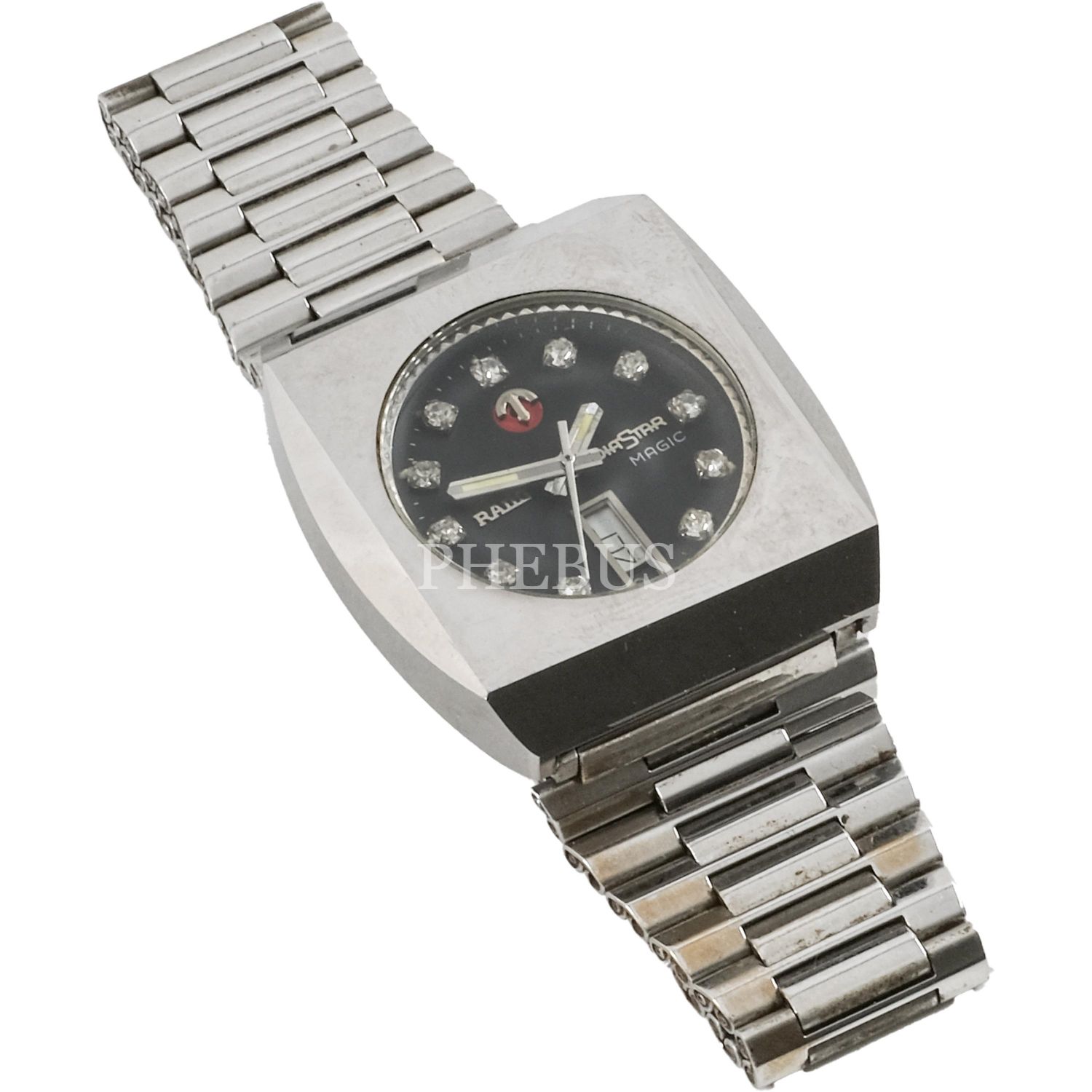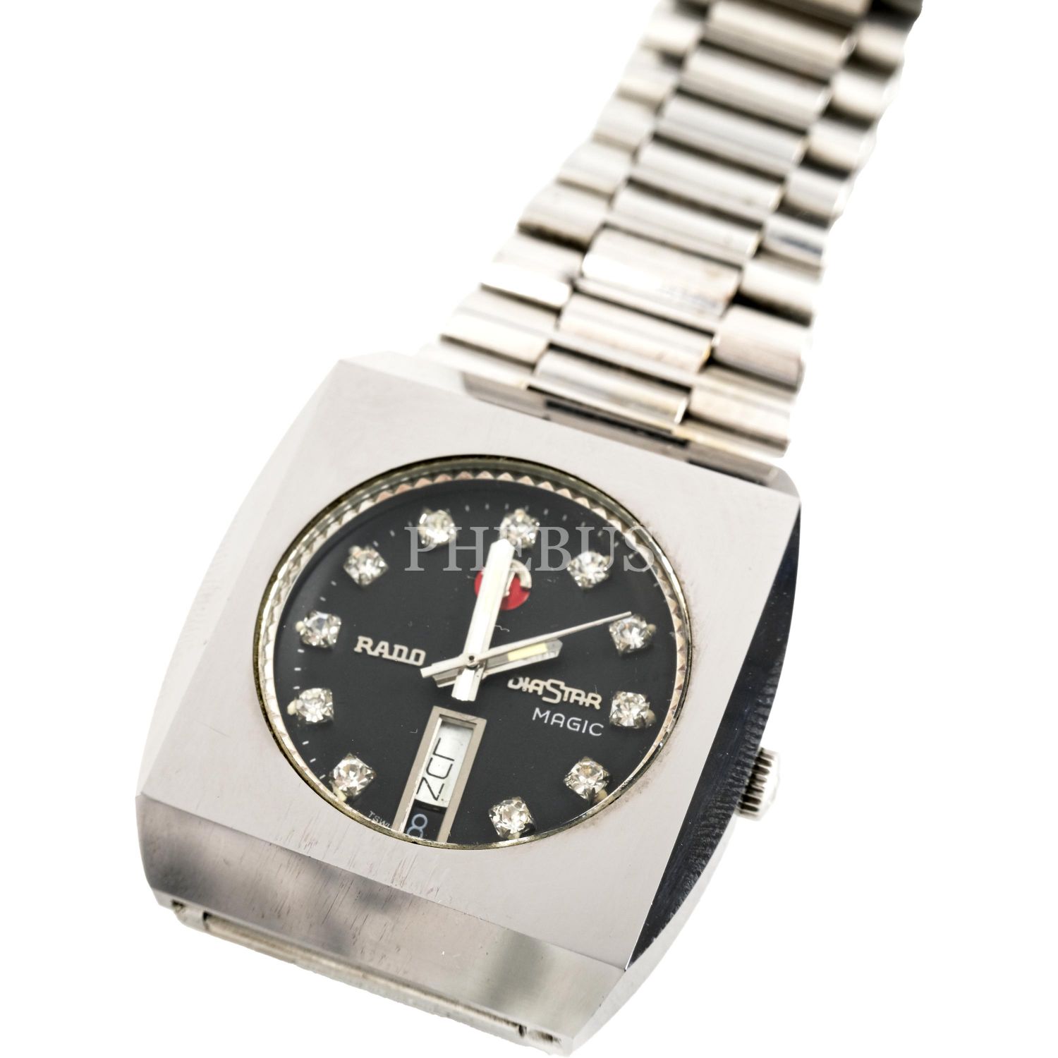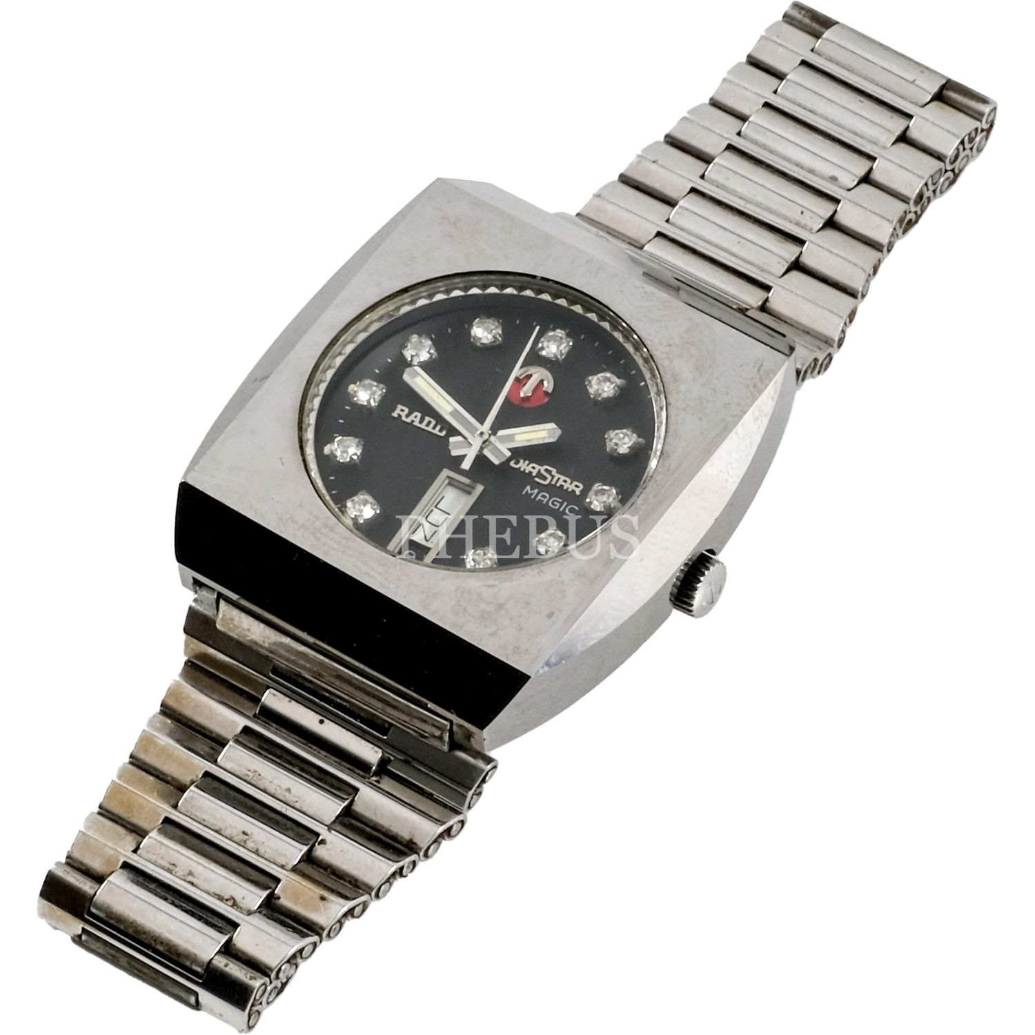 Rado´nun 70´li yıllarda üretilen tungsten metalinden yapılan kasaya sahip DiaStar 14 modeli. 11 adet pırlanta indeksleri ve saat 6 konumunda tarih penceresi mevcuttur.
