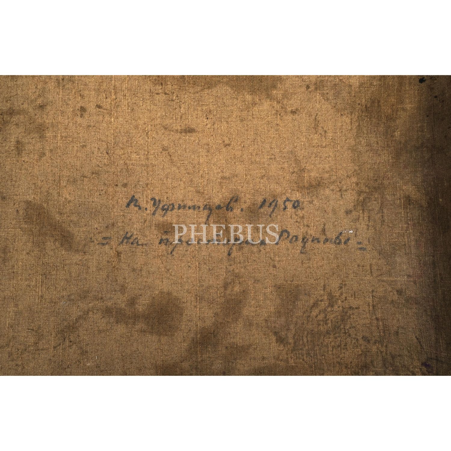 Resmin arka yüzünde Kiril alfabesiyle 1950 tarihli imza ve Rusça olarak "Yurdumun genişliği" yazılıdır.