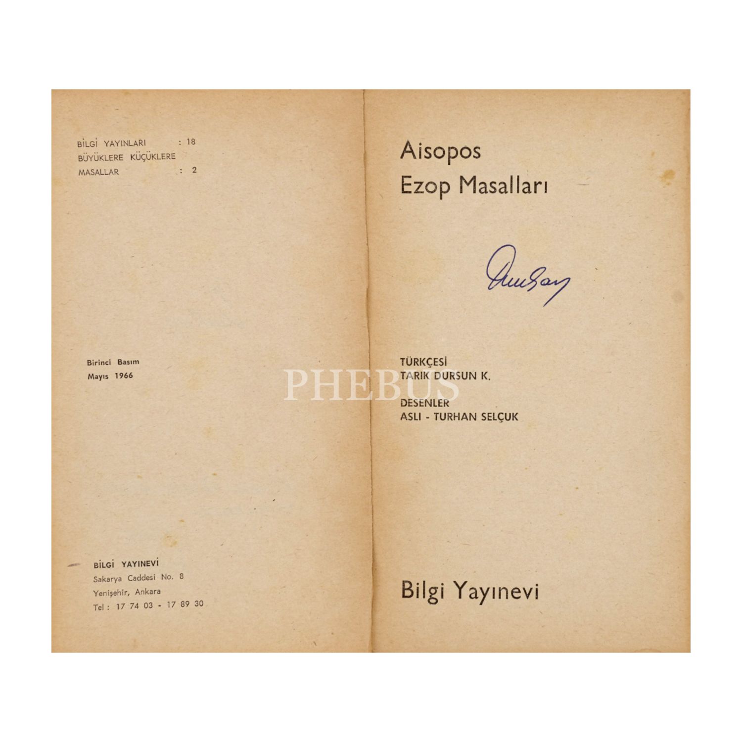 Turhan Selçuk'un kızı Aslı'yla birlikte resimlediği Ezop Masalları... İthaf ve imza Turhan Selçuk'a ait olmayabilir.