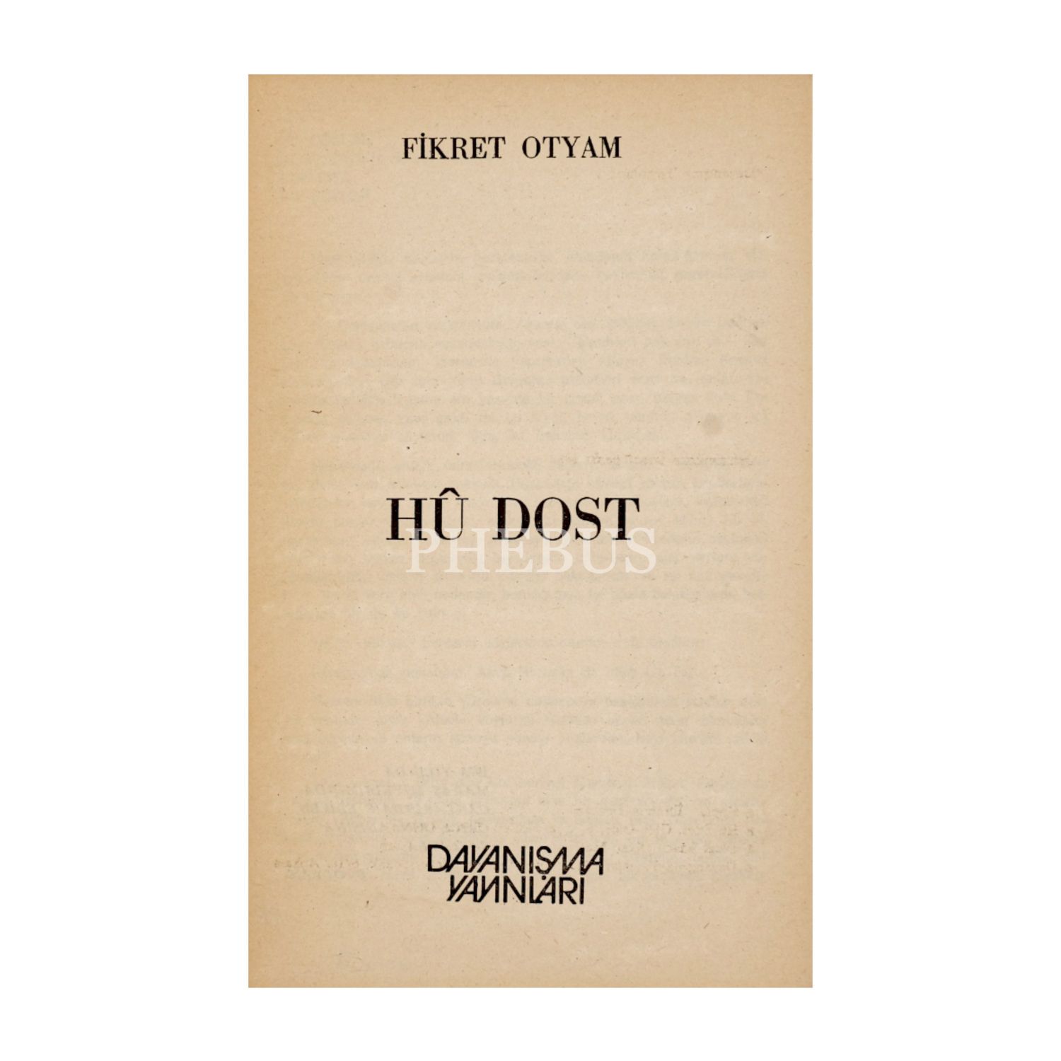 HÛ DOST, Fikret Otyam, 1982, Dayanışma Yayınları, 176 sayfa, 12x19 cm...