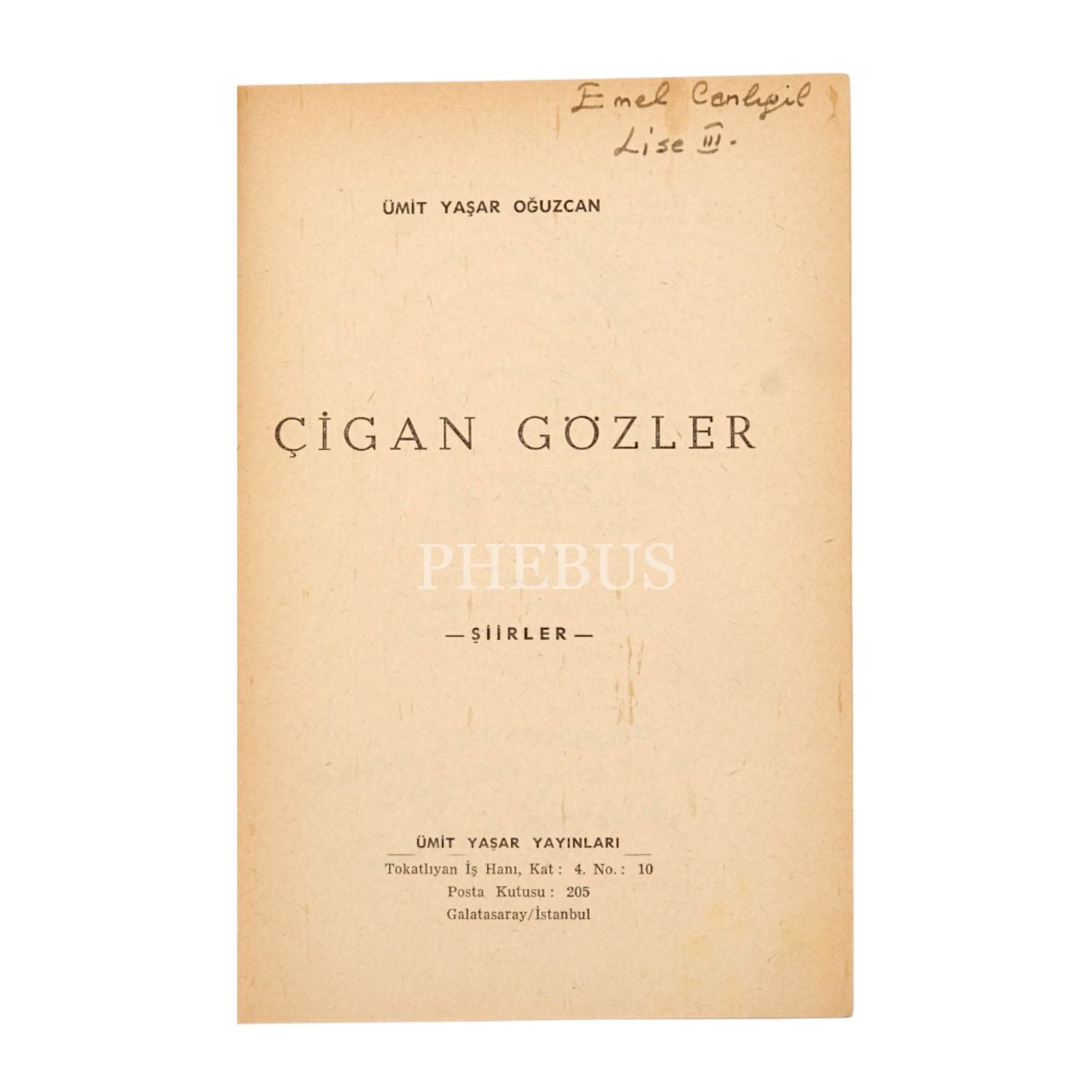 ÇİGAN GÖZLER, Ümit Yaşar, Ü Yayınları, 61 sayfa, 14x19 cm...