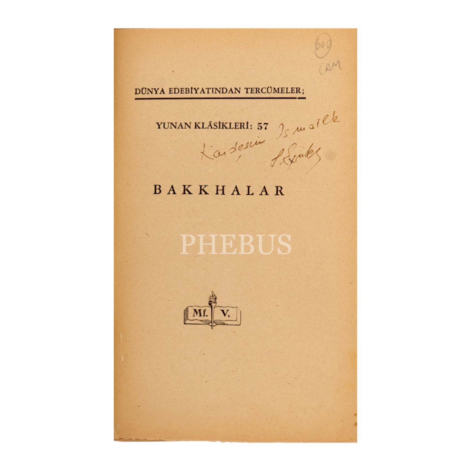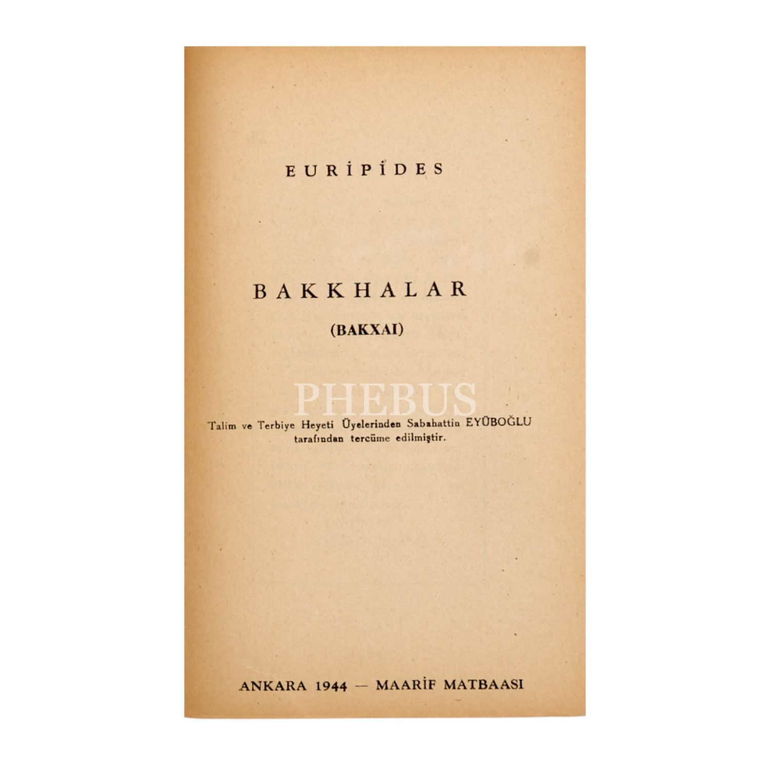 BAKKHALAR, Euripides, çeviren: Sabahattin Eyüboğlu, 1944, Maarif Vekâleti, 64 sayfa, 12x19 cm...