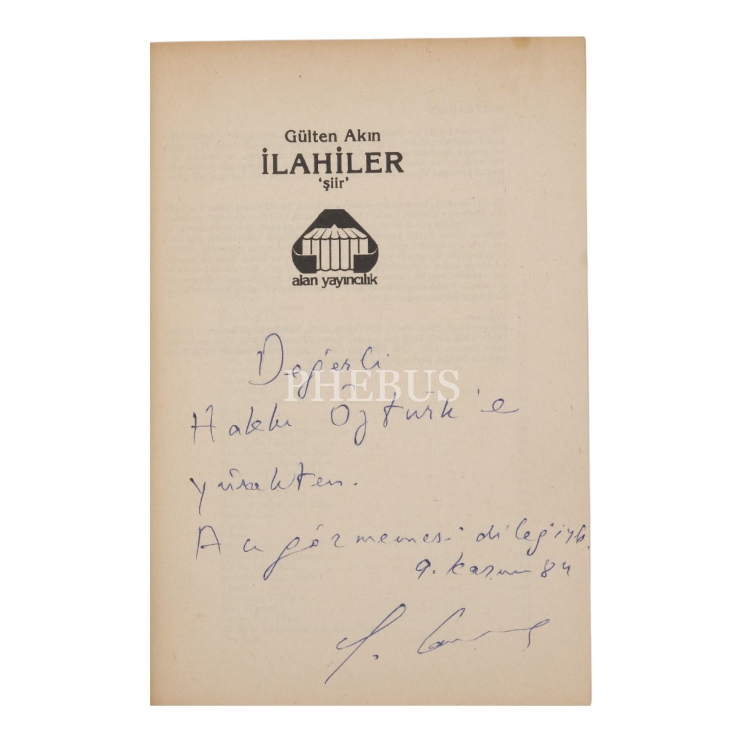 İLAHİLER, Gülten Akın, 1984, Alan Yayıncılık, 77 sayfa, 13x19 cm...
