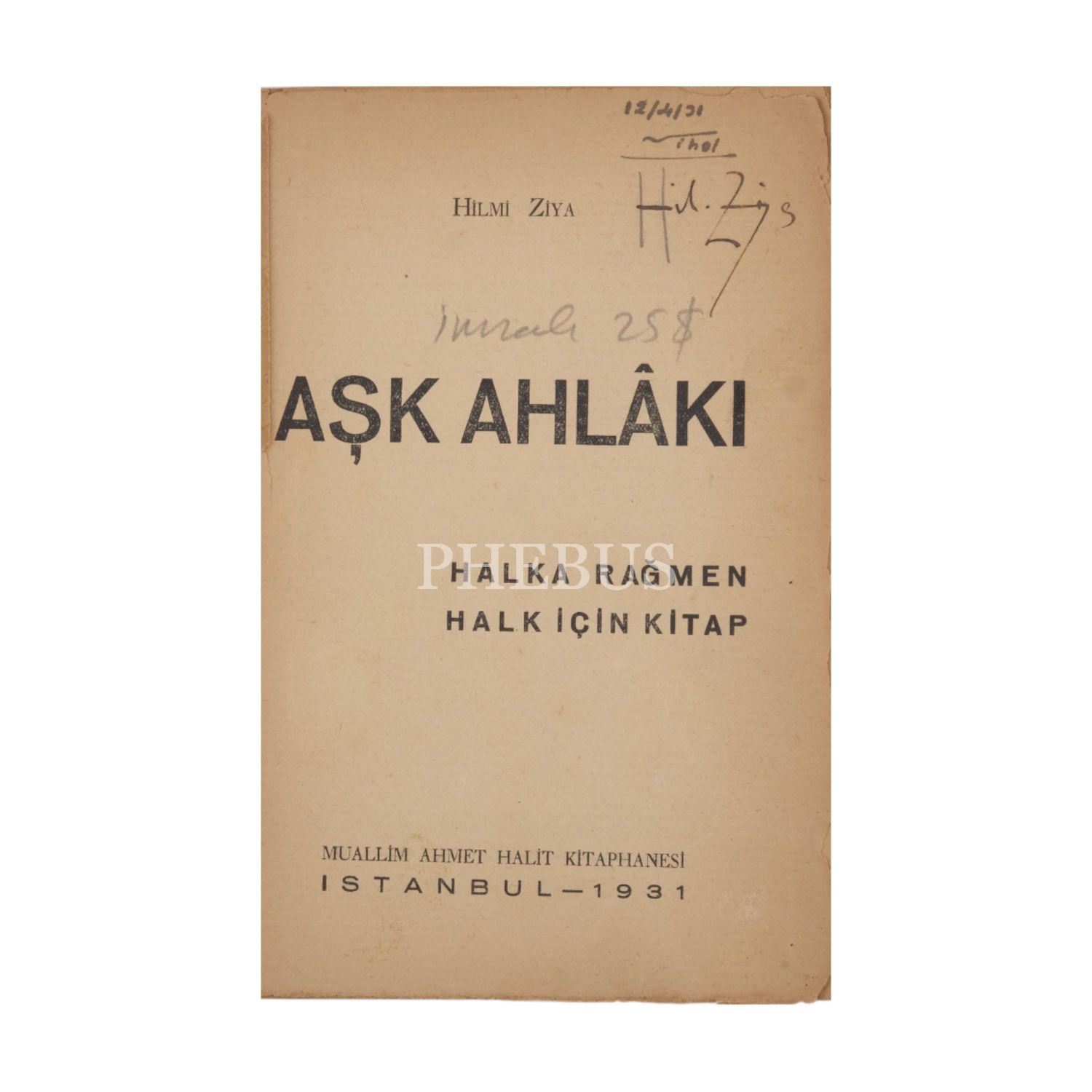 AŞK AHLAKI, Hilmi Ziya (Ülken), 1931, Muallim Ahmet Halit Kitaphanesi, 244 sayfa, 14x20 cm...