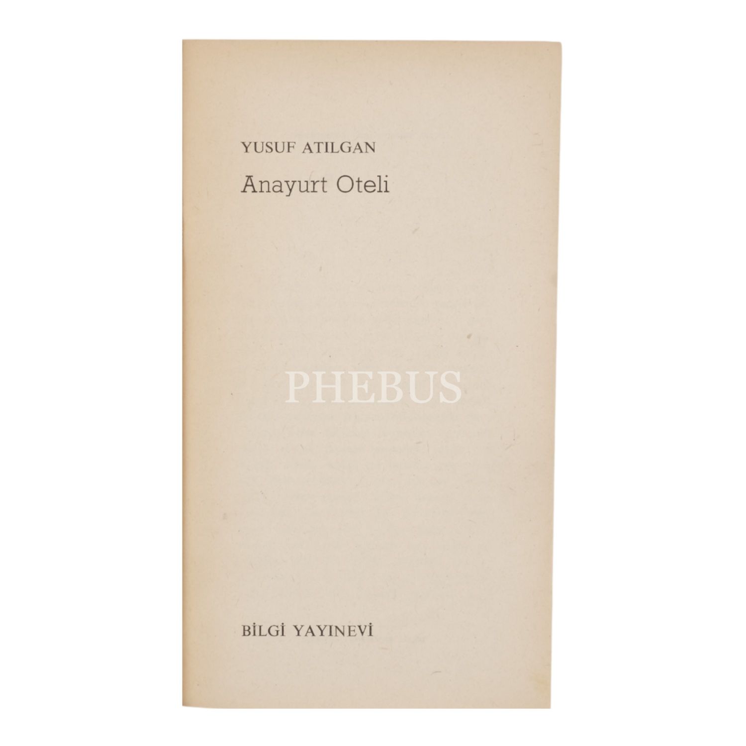 ANAYURT OTELİ, Yusuf Atılgan, 1973, Bilgi Yayınevi, 172 sayfa, 11x19 cm...
