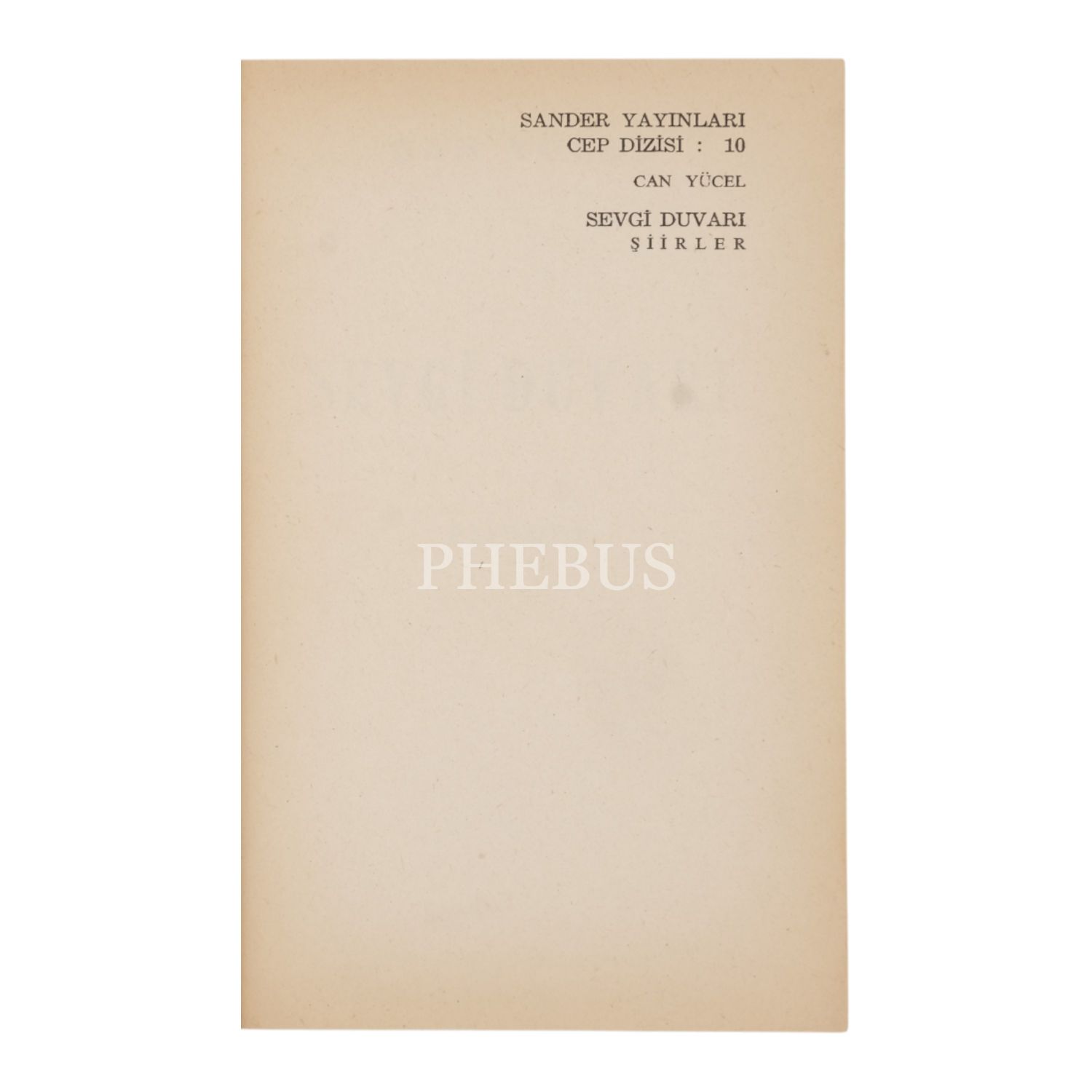 SEVGİ DUVARI, Can Yücel, 1974, 124 sayfa, 12x18 cm...