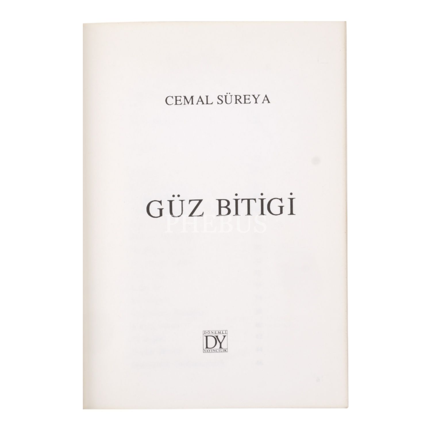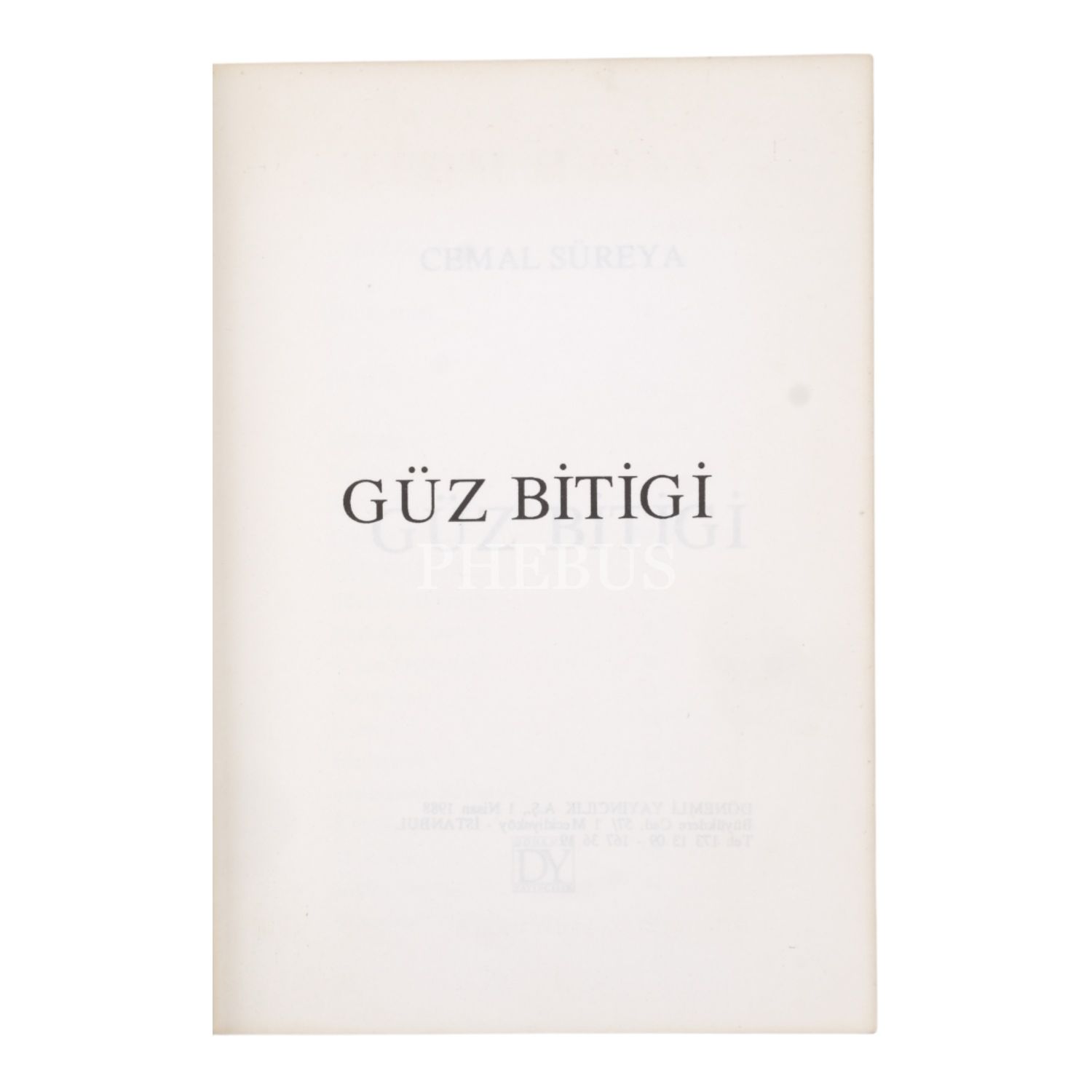 GÜZ BİTİGİ, Cemal Süreya, 1988, Dönemli Yayıncılık, 68 sayfa, 13x19 cm...