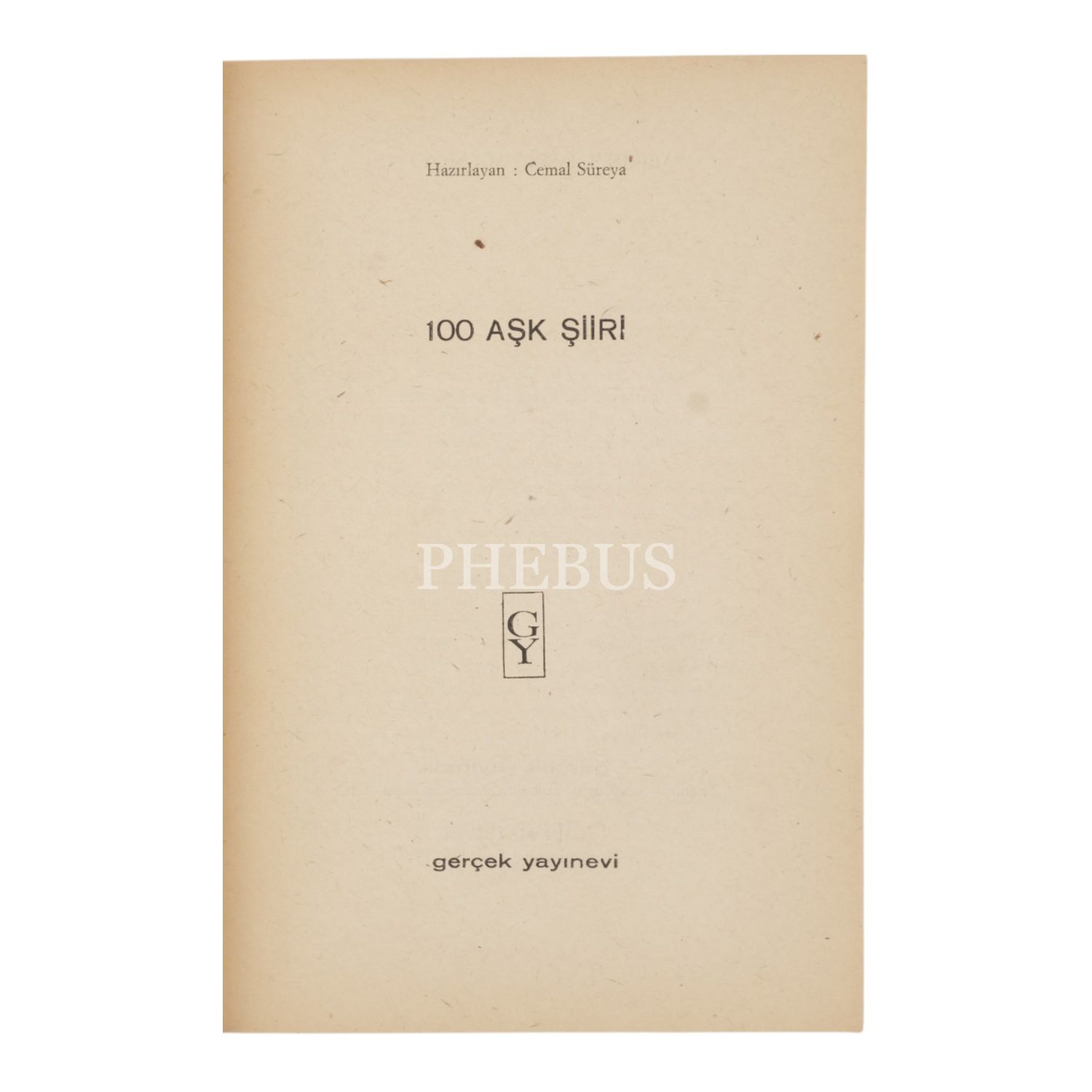 100 AŞK ŞİİRİ, Hazırlayan Cemal Süreya, 1967, Gerçek Yayıncılık, 172 sayfa, 14x20 cm...