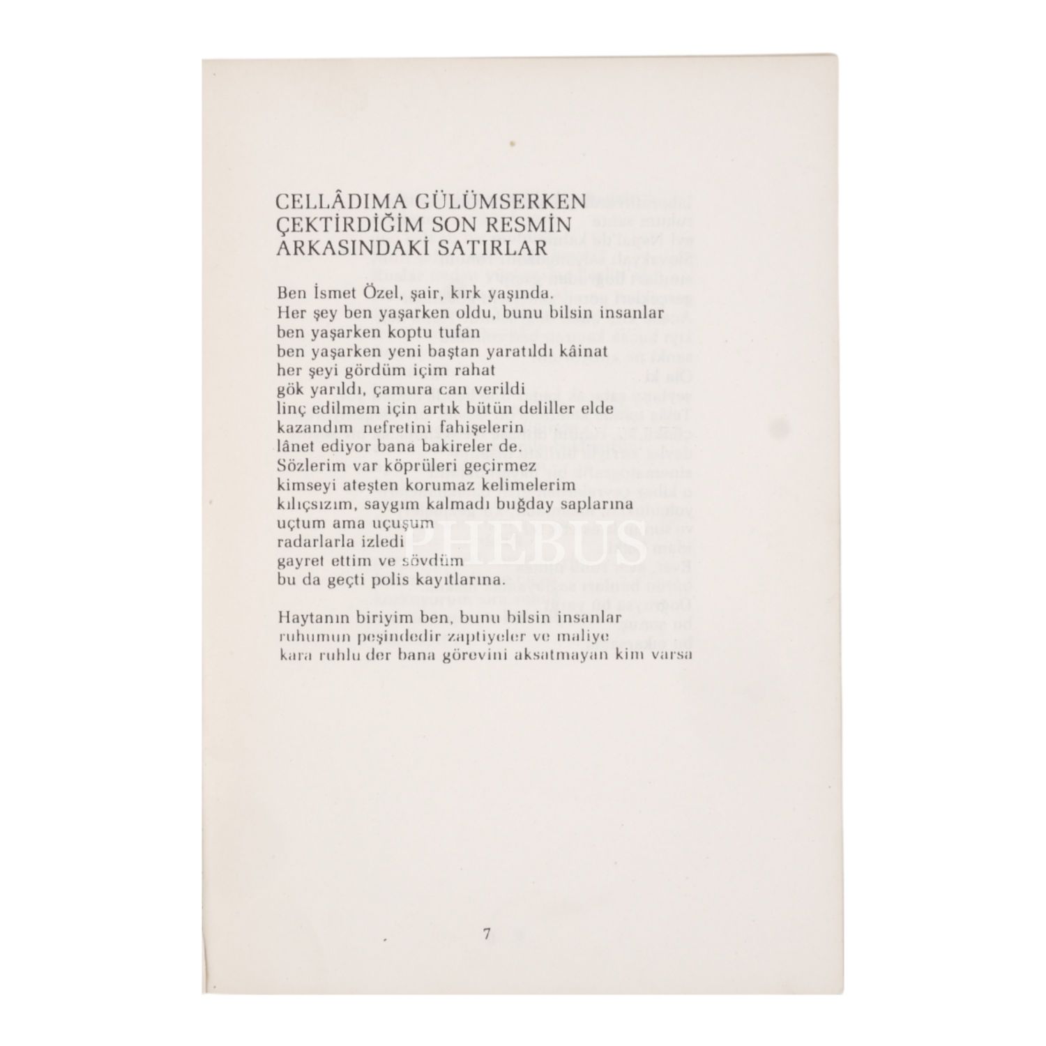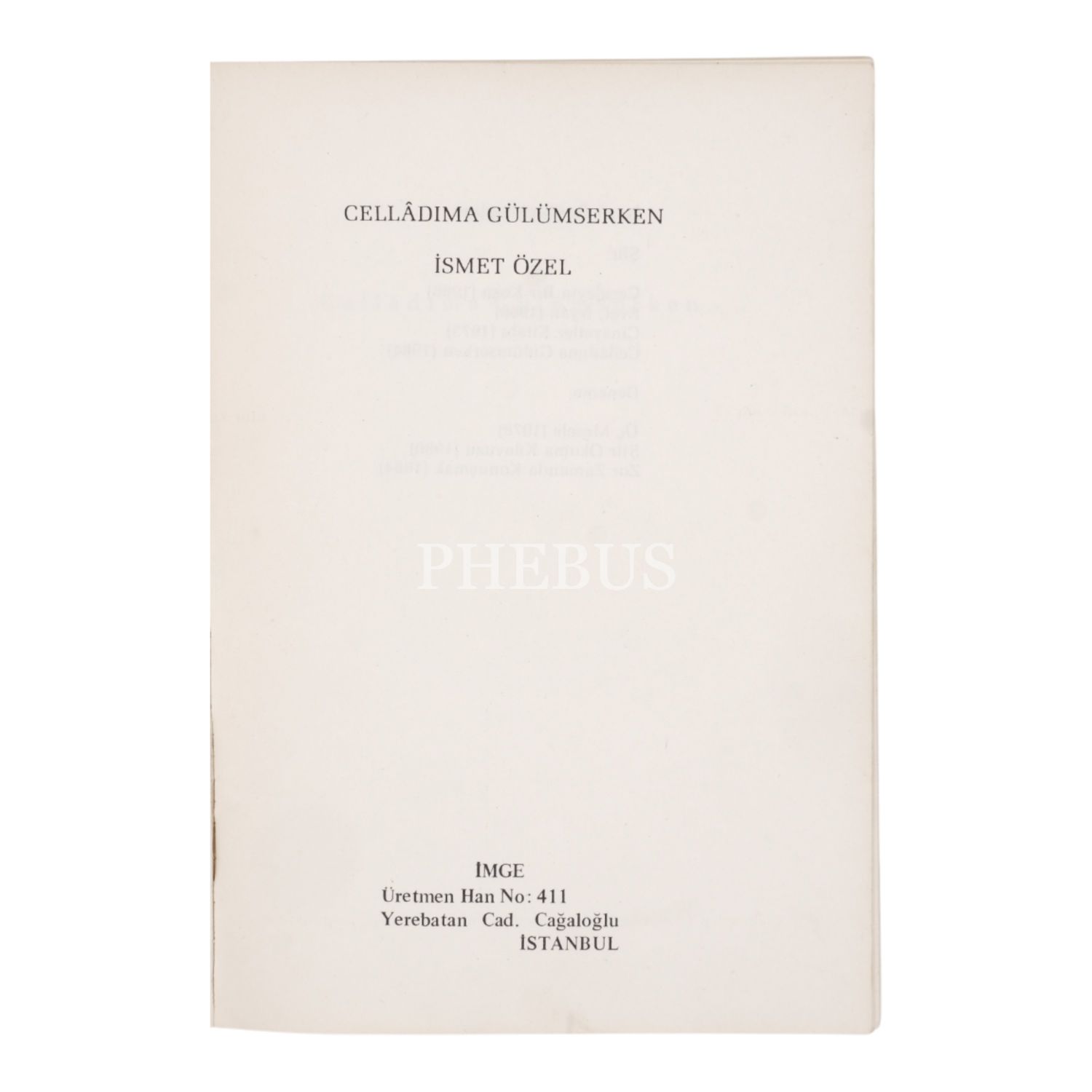 CELLÂDIMA GÜLÜMSERKEN ÇEKTİRDİĞİM SON RESMİN ARKASINDAKİ SATIRLAR, İsmet Özel, 1984, İmge, 31 sayfa, 13x19 cm...