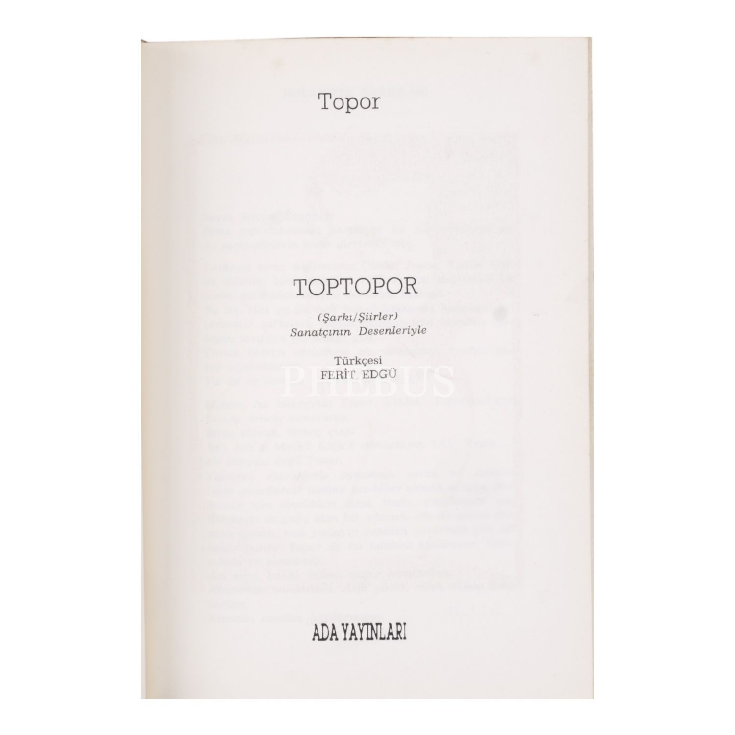 TOPTOPOR (ŞARKI/ŞİİR), Topor, çeviren: Ferit Edgü, 1988, 55 sayfa, 14x20 cm...