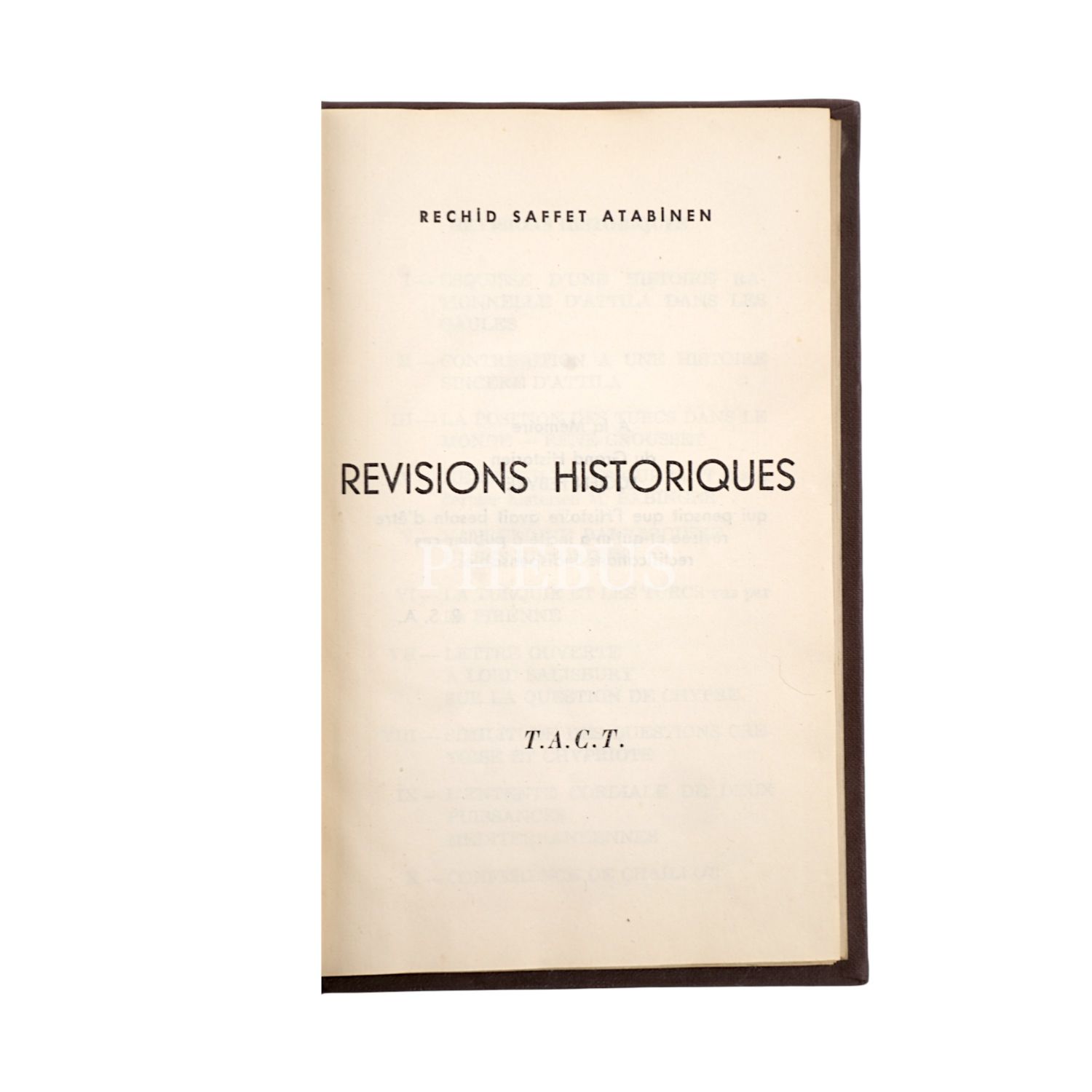 REVISIONS HISTORIQUES, Reşid Saffet Atabinen, 1958, L´Imprimerie Çituri, İstanbul, 187 sayfa, 12x19 cm...