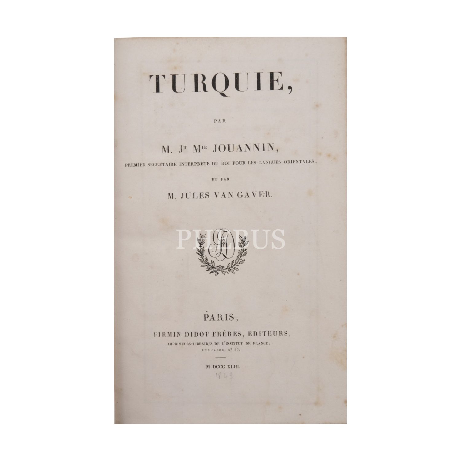 L´UNIVERS (HISTORIE ET DESCRIPTION- DE TOUS LES PEUPLES TURQUIE), M.J.M. Jouannin, Firmin Didot Freres, 1843, 462 sayfa + gravürler, 14x22cm...