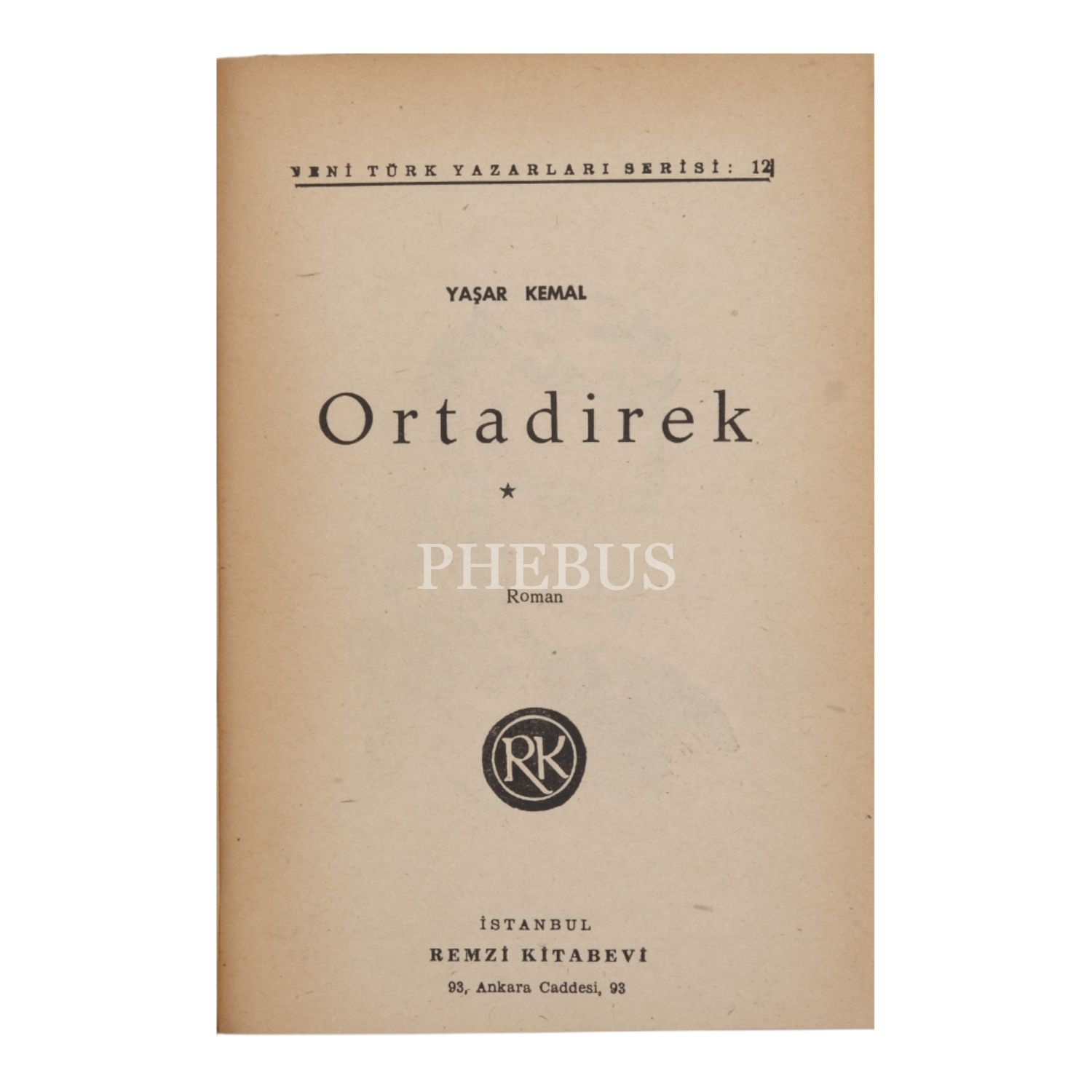 ORTA DİREK, Yaşar Kemal, 1960, Remzi Kitabevi, 372 sayfa, 14x20 cm...
