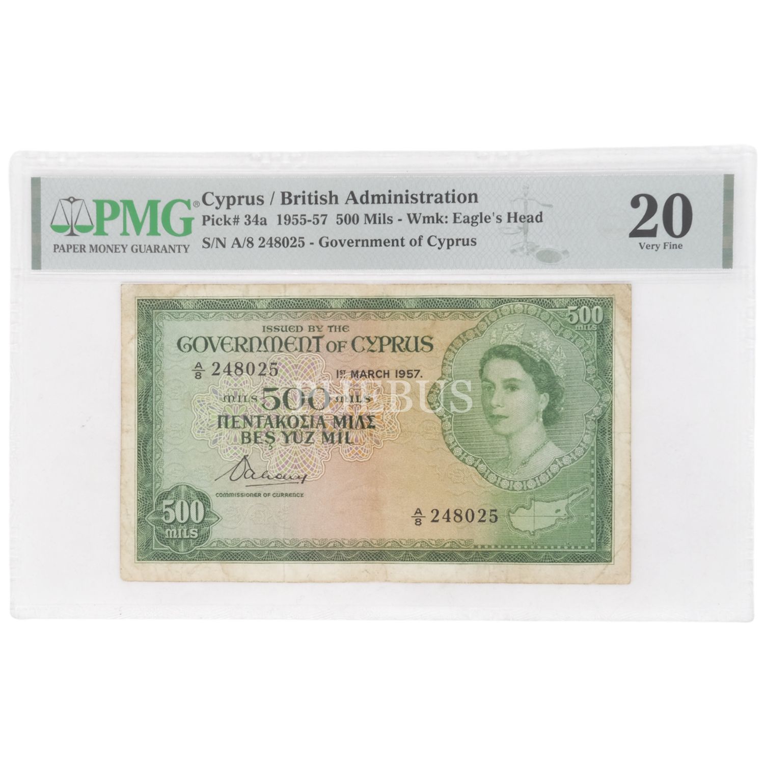 1955 KIBRIS 500 MILS PMG SERTİFİKALI 20 PUAN