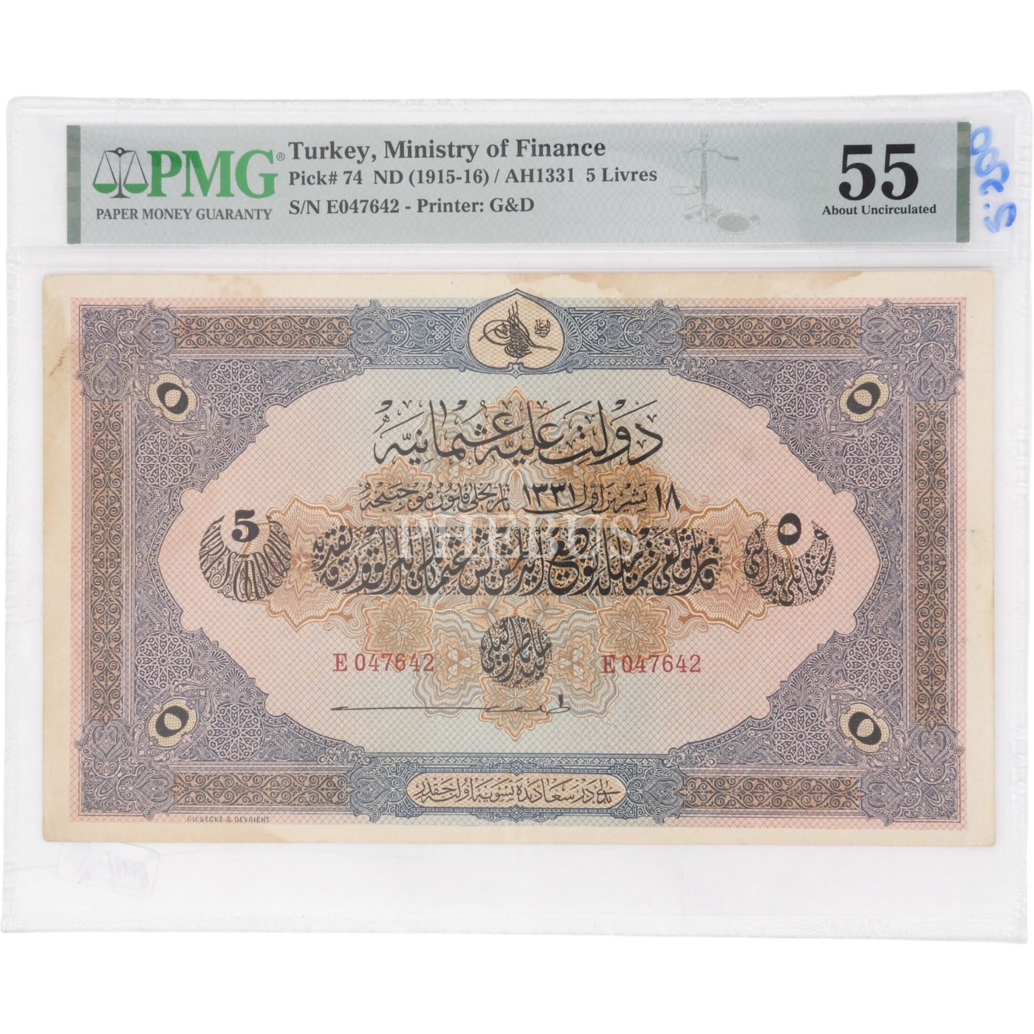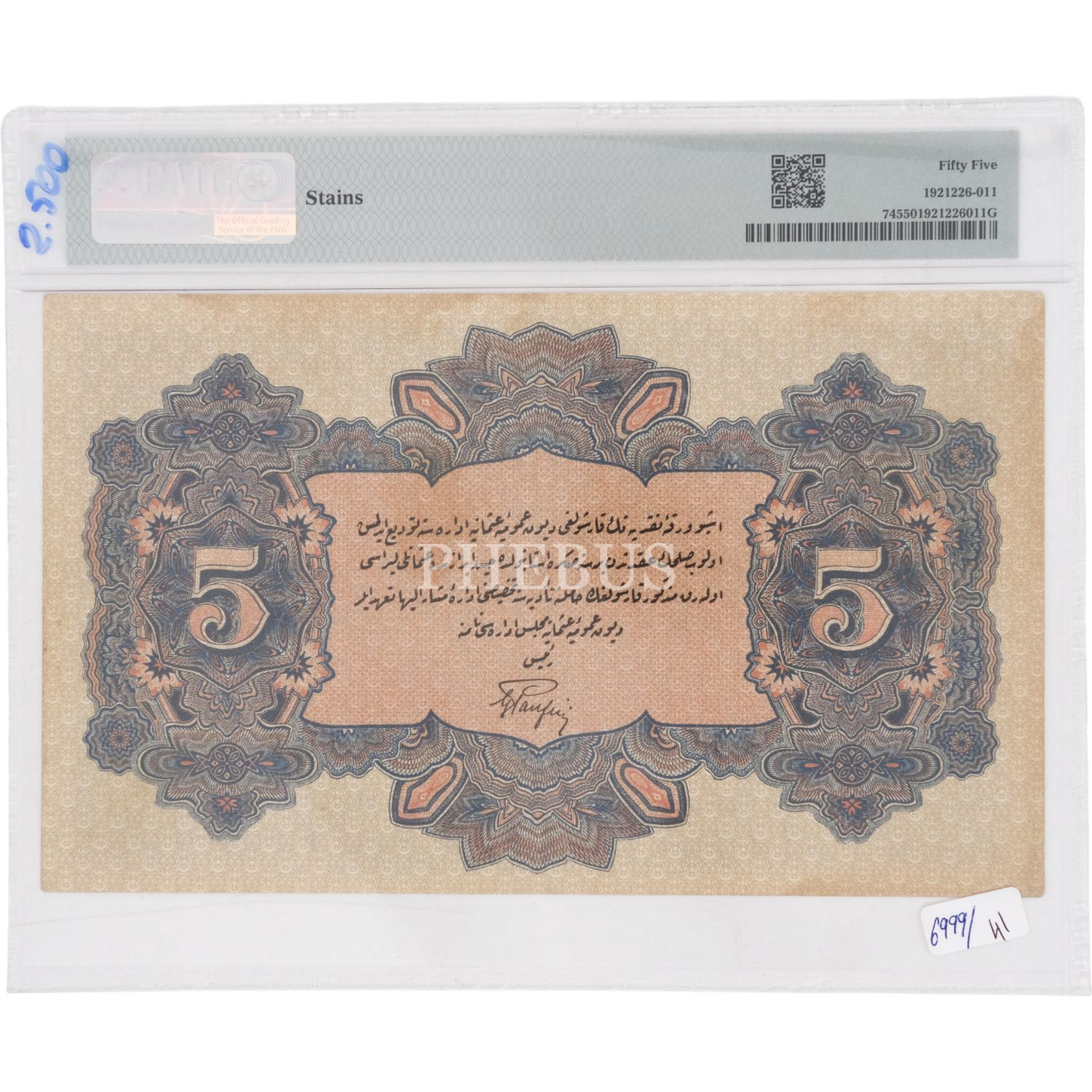 18 EKİM 1331 SULTAN REŞAD 5 LİRA NADİR PANFİLİ İMZALI PMG SERTİFİKALI 55 PUAN