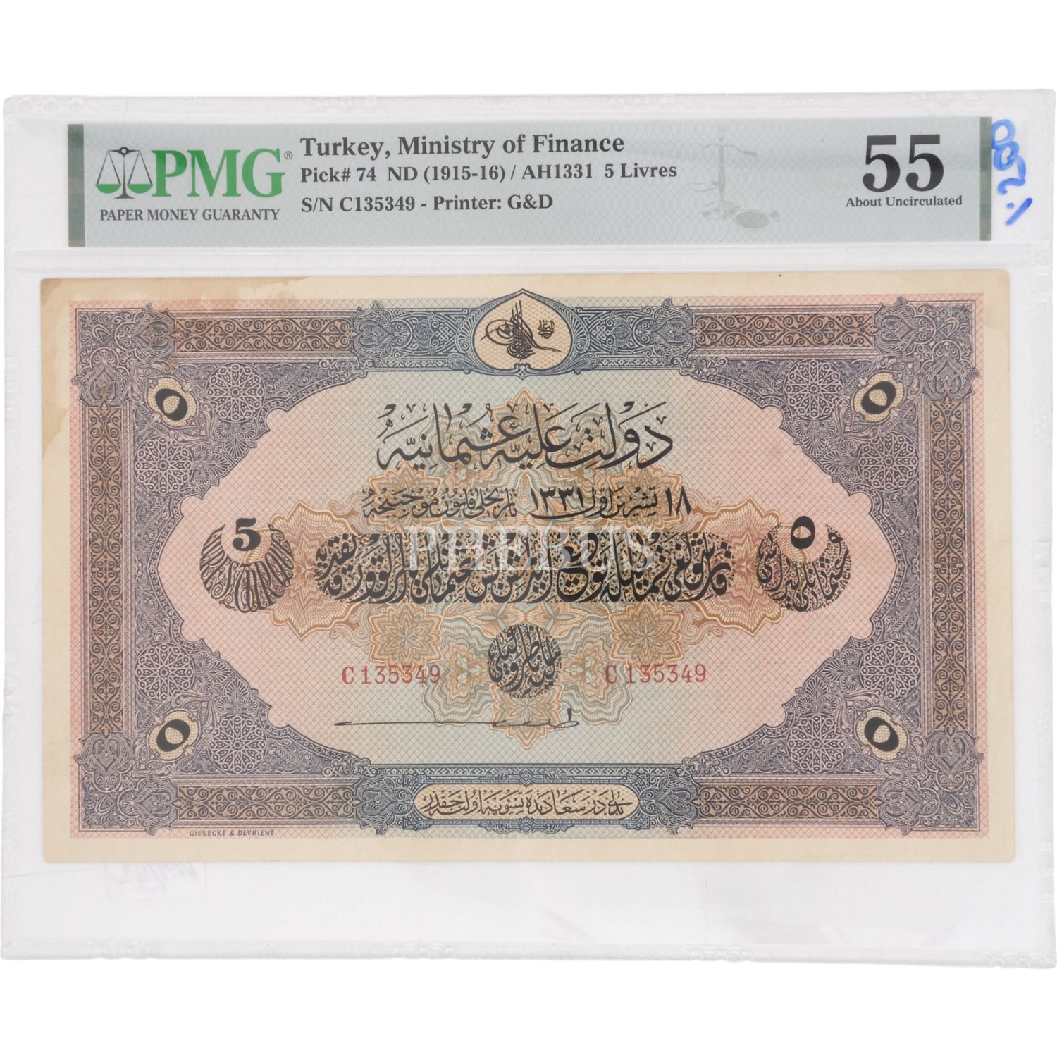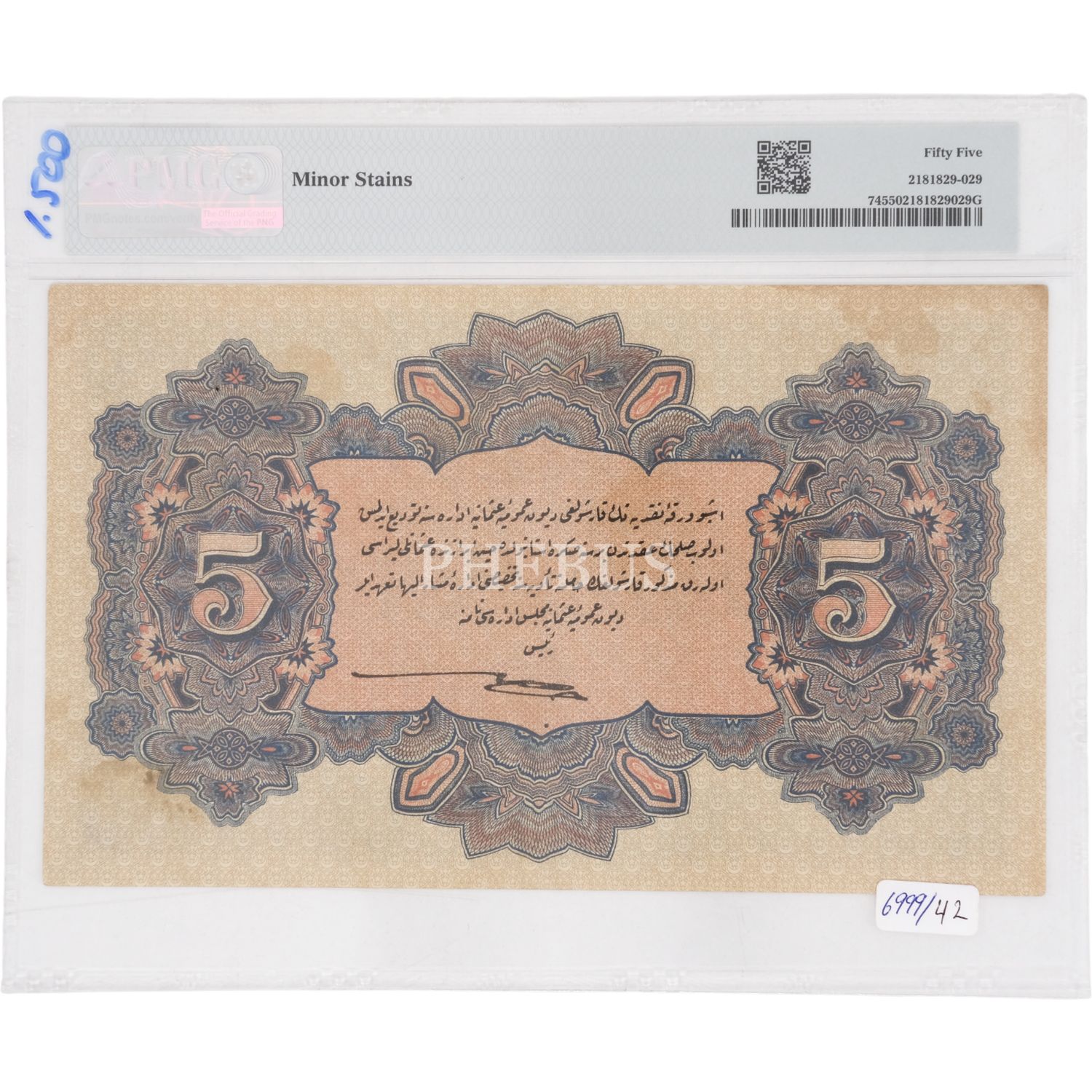 18 EKİM 1331 SULTAN REŞAD 5 LİRA HÜSEYİN CAHİD İMZALI PMG SERTİFİKALI 55 PUAN