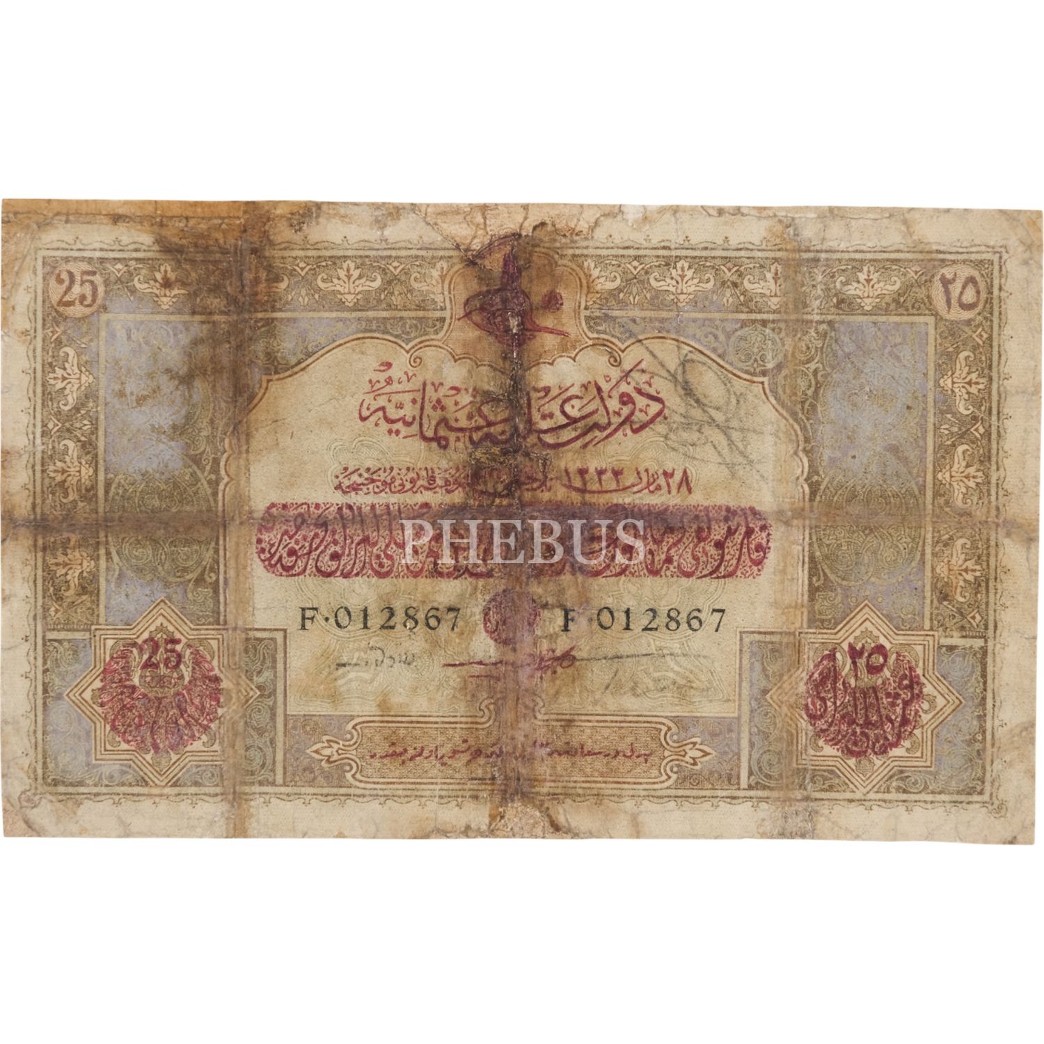 28 MART 1333 SULTAN REŞAD 25 LİRA HÜSEYİN CAHİD İMZALI TAMİRLİ HALİYLE