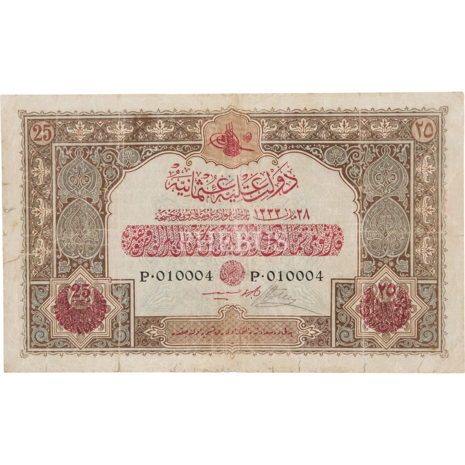 28 MART 1333 SULTAN REŞAD 25 LİRA HÜSEYİN CAHİD İMZALI TAMİRLİ HALİYLE