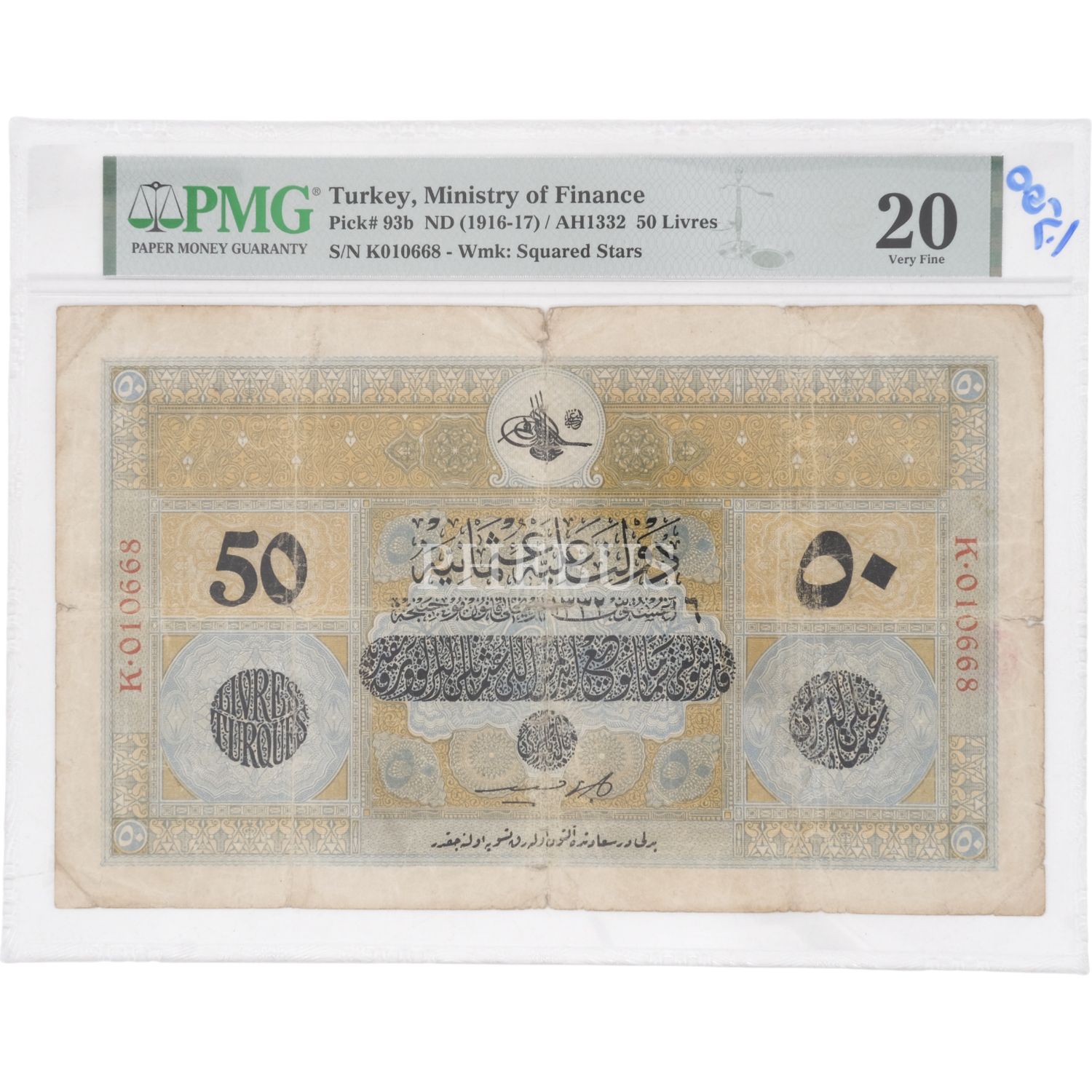 6 AĞUSTOS 1332 SULTAN REŞAD 50 LİRA HÜSEYİN CAHİD İMZALI PMG SERTİFİKALI 20 PUAN