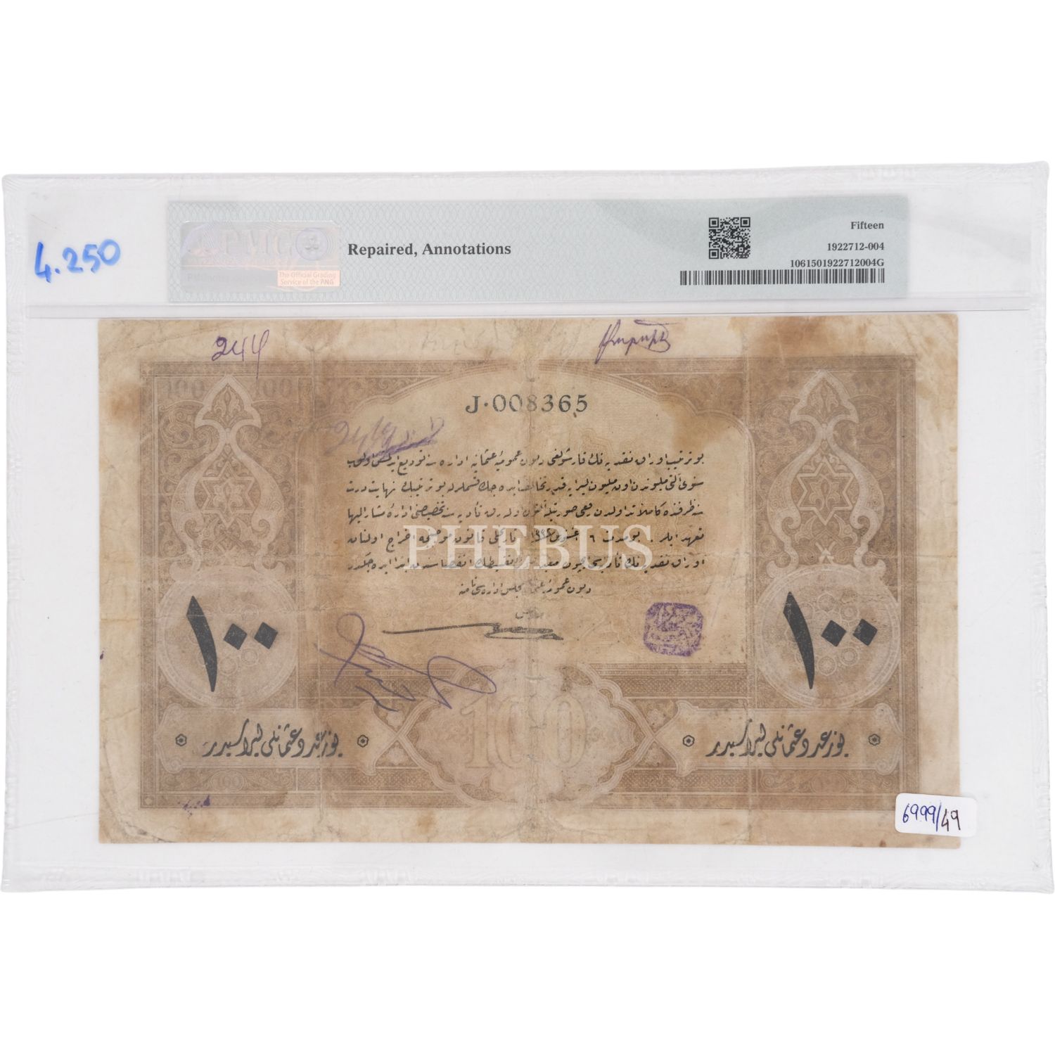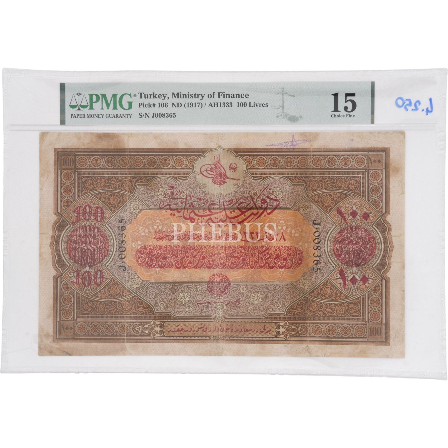 28 MART 1333 SULTAN REŞAD 100 LİRA PMG SERTİFİKALI HÜSEYİN CAHİD İMZALI PMG SERTİFİKALI 15 PUAN
