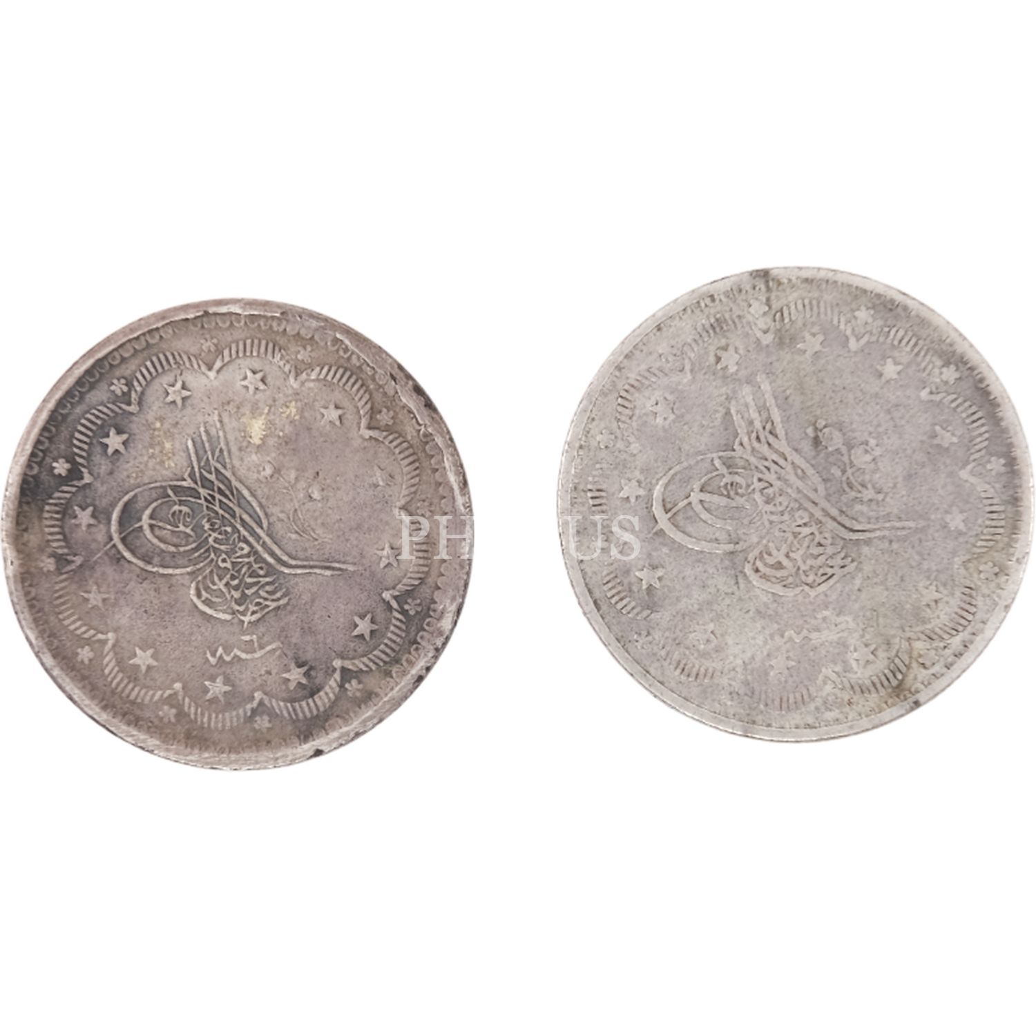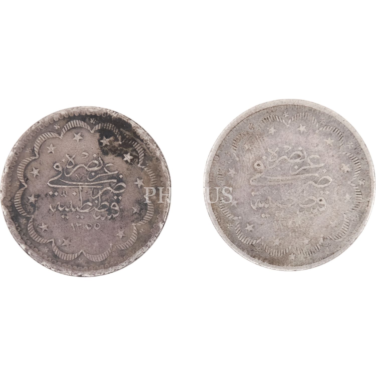 GÜMÜŞ 1255/6 SULTAN ABDÜLMECİD 5 KURUŞ KOSTANTİNİYE 2 ADET TEMİZ - HALİYLE