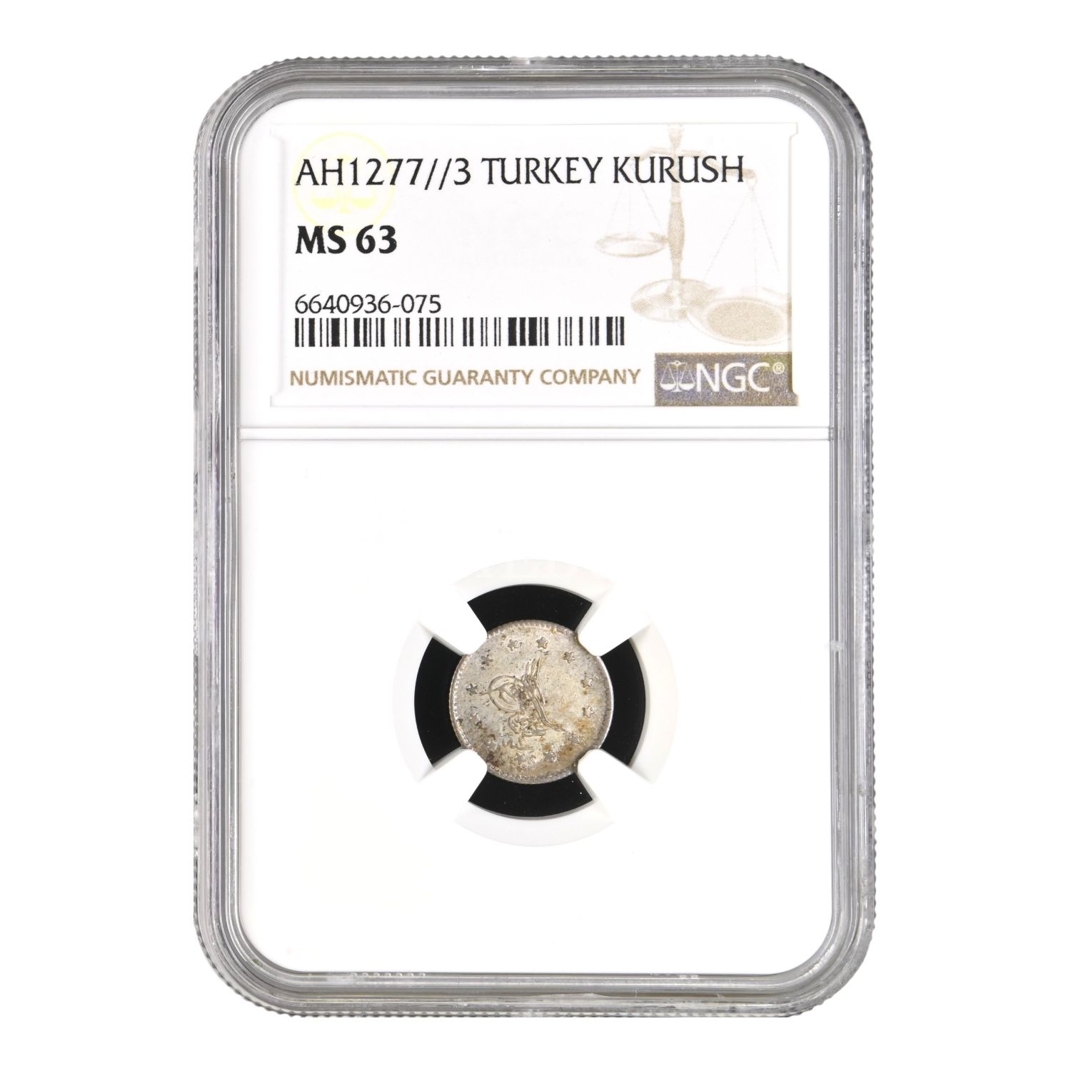 GÜMÜŞ 1277/3 SULTAN ABDÜLAZİZ 1 KURUŞ KOSTANTİNİYE NGC SERTİFİKALI MS 63 PUAN