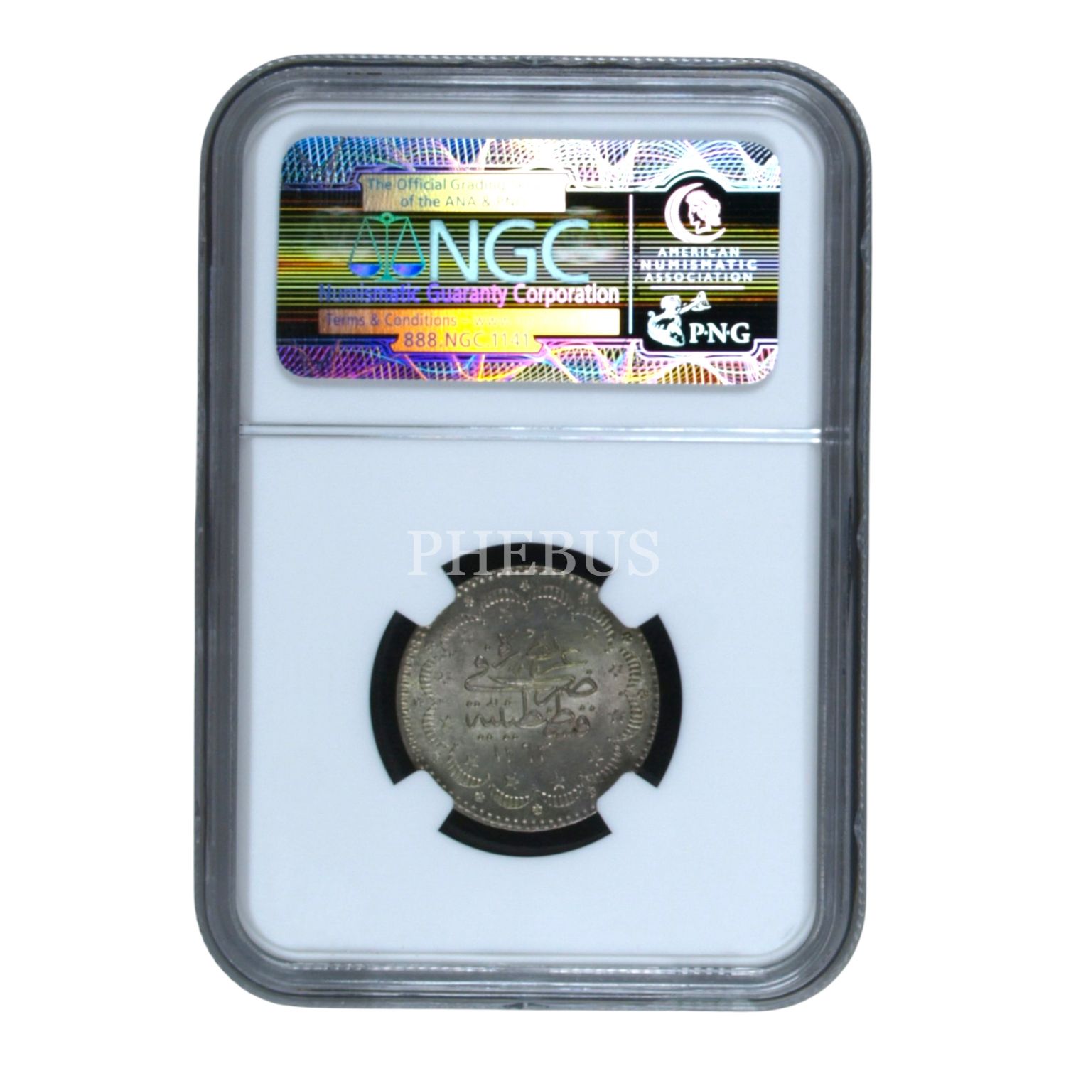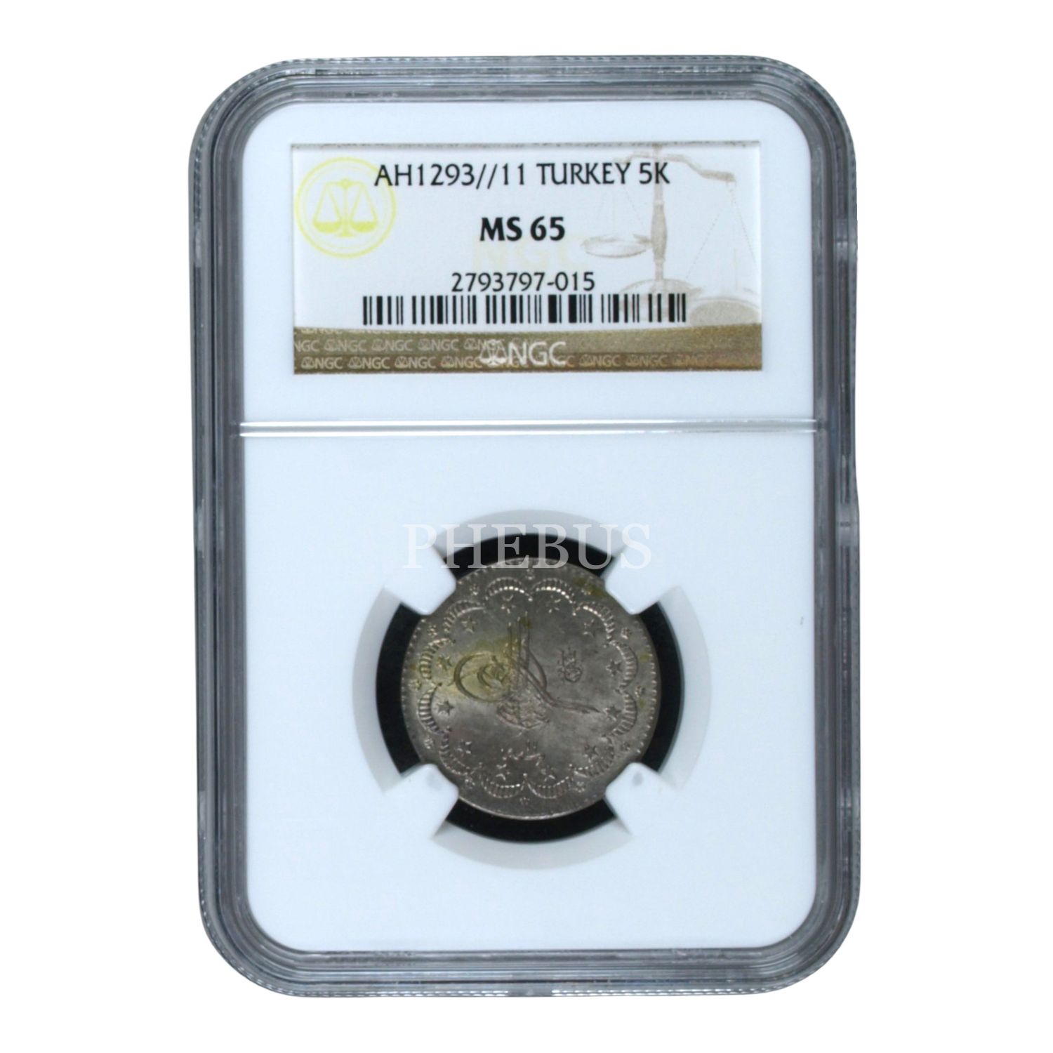 GÜMÜŞ 1293/11 SULTAN II. ABDÜLHAMİD 5 KURUŞ KOSTANTİNİYE NGC SERTİFİKALI MS 65 PUAN
