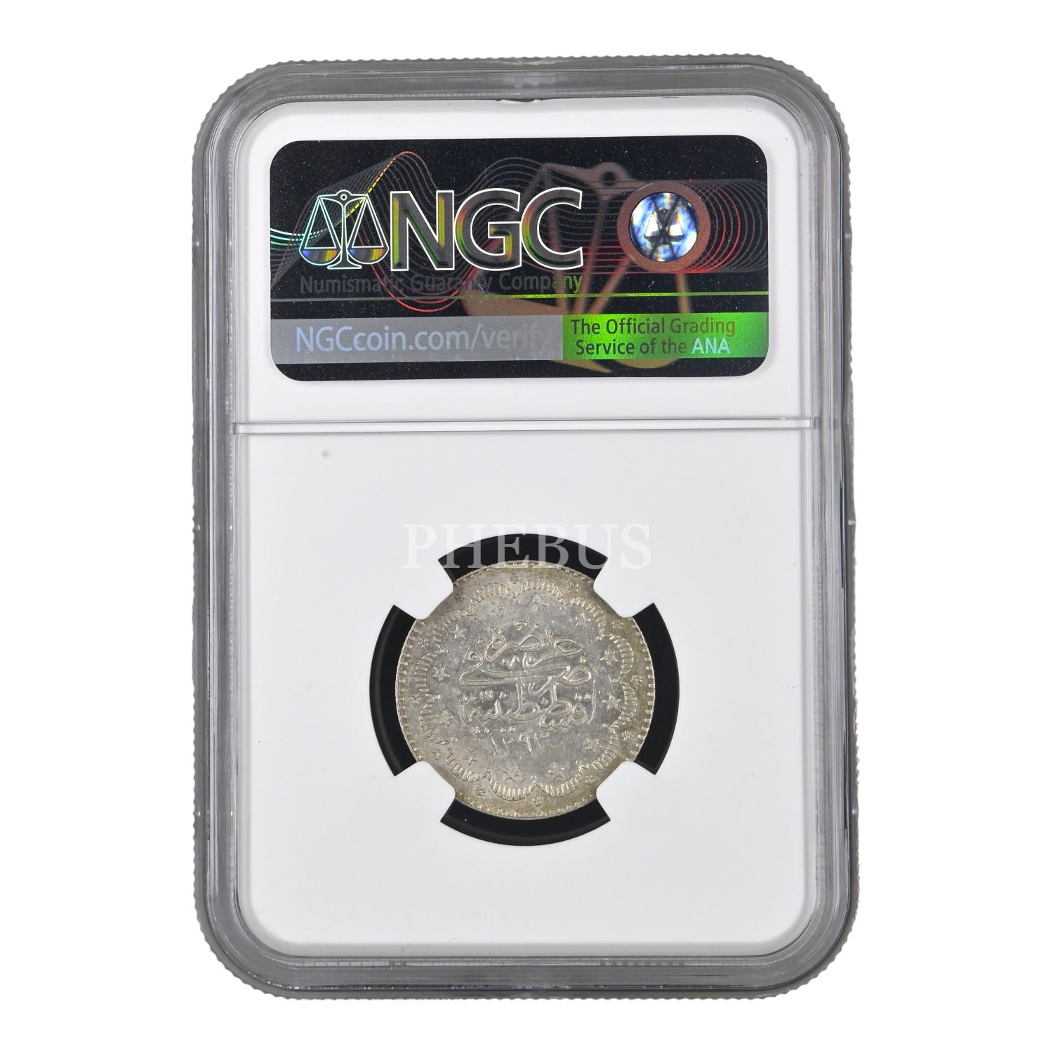 GÜMÜŞ 1293/17 SULTAN II. ABDÜLHAMİD 5 KURUŞ KOSTANTİNİYE NGC SERTİFİKALI MS 63 PUAN