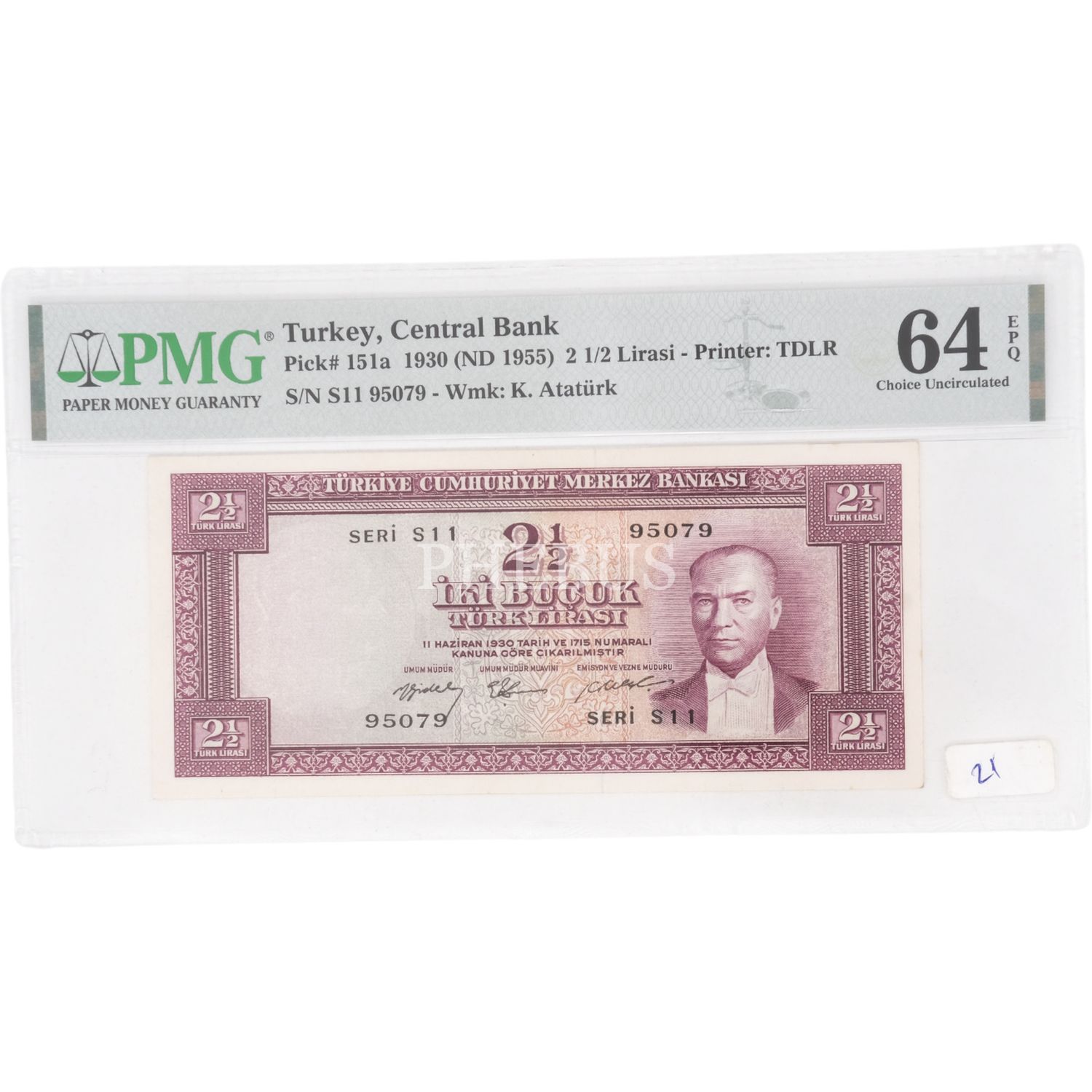 5. EMİSYON 2. TERTİP 2.5 LİRA SERİ S11 PMG SERTİFİKALI 64 EPQ ÇİL