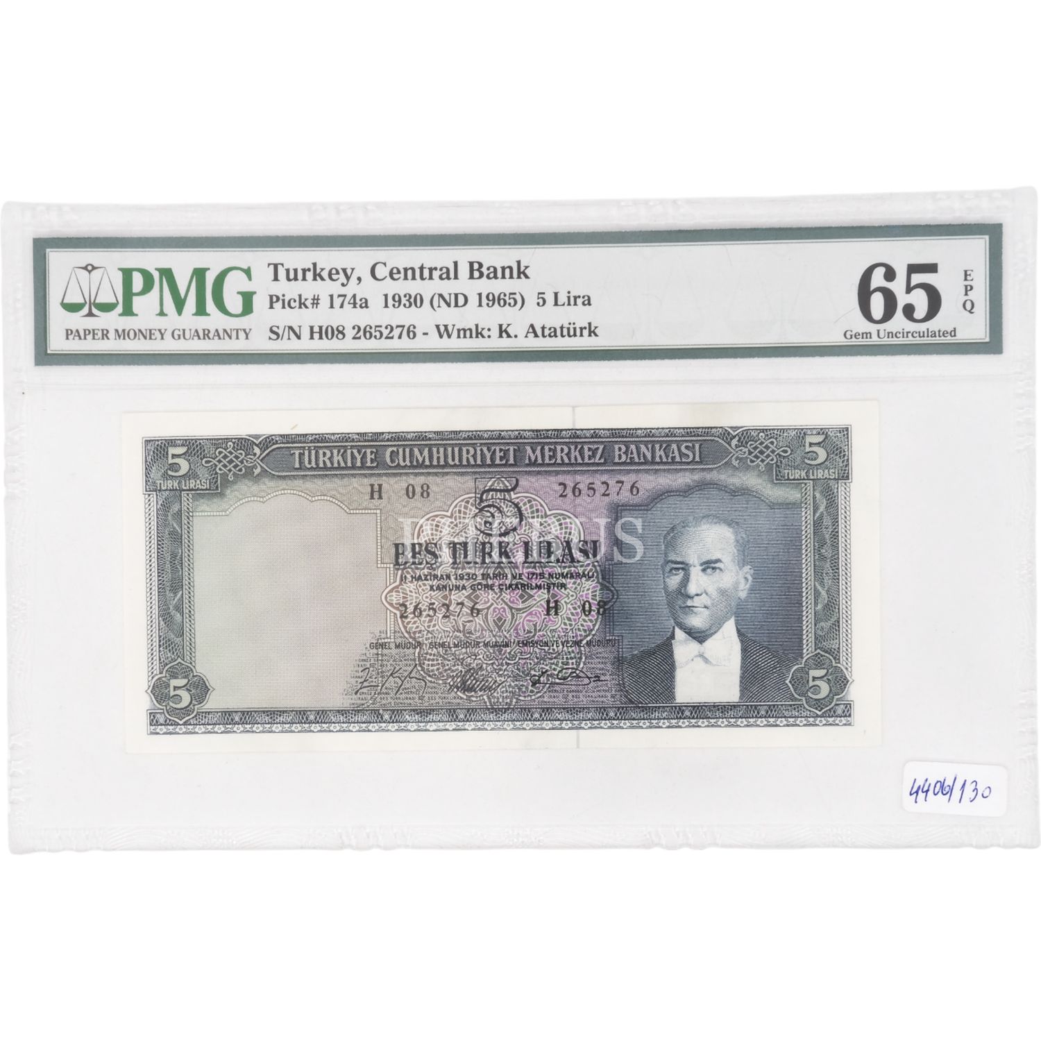 5. EMİSYON 4. TERTİP 5 LİRA SERİ H08 PMG SERTİFİKALI 65 EPQ ÇİL