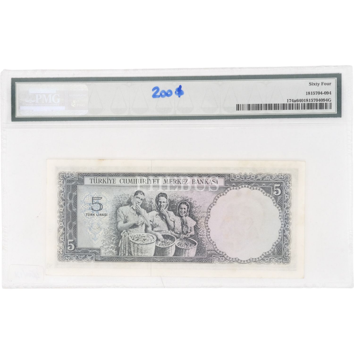 5. EMİSYON 4. TERTİP 5 LİRA SERİ H34 PMG SERTİFİKALI 64 PUAN