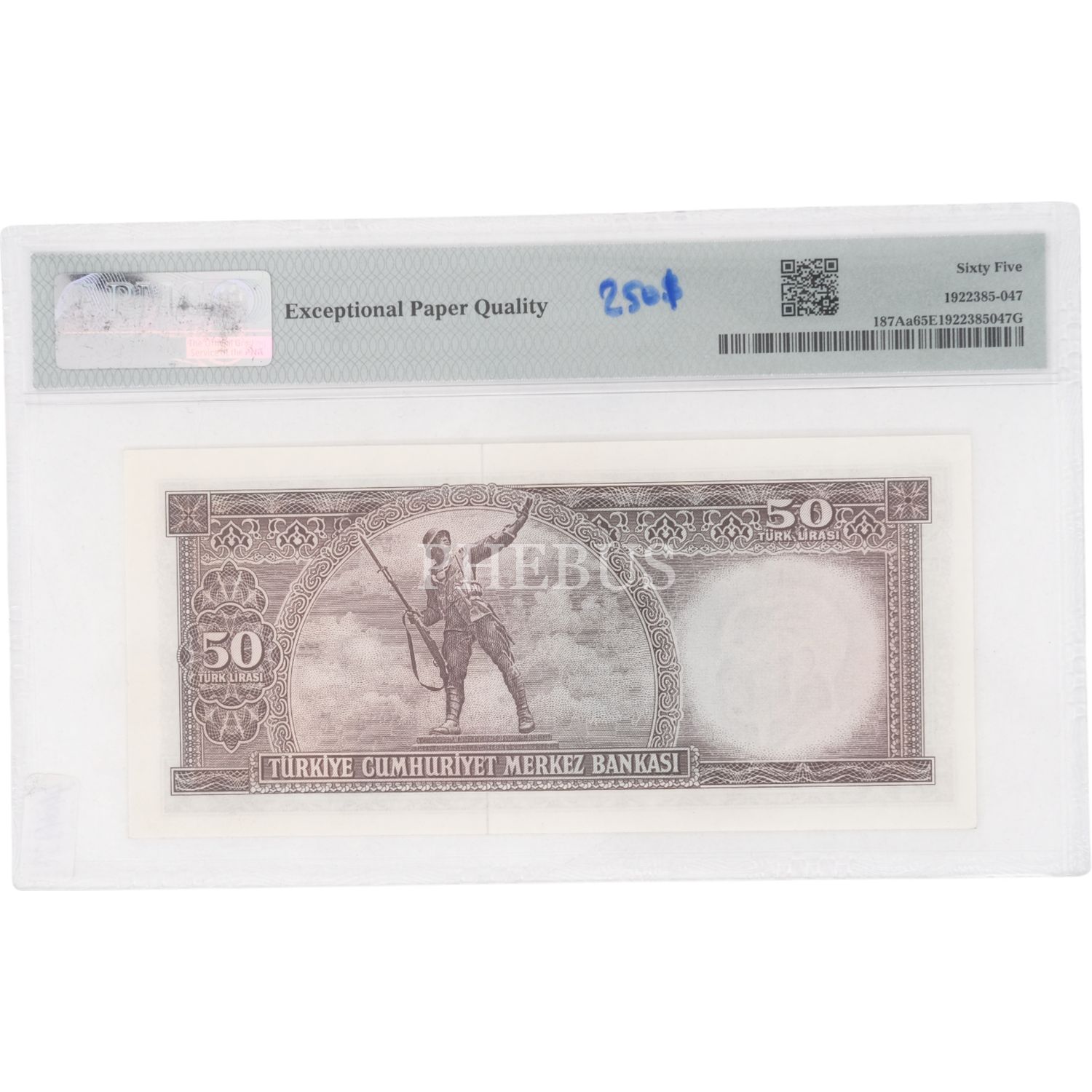 5. EMİSYON 7. TERTİP 50 LİRA SERİ U70 PMG SERTİFİKALI 65 EPQ ÇİL