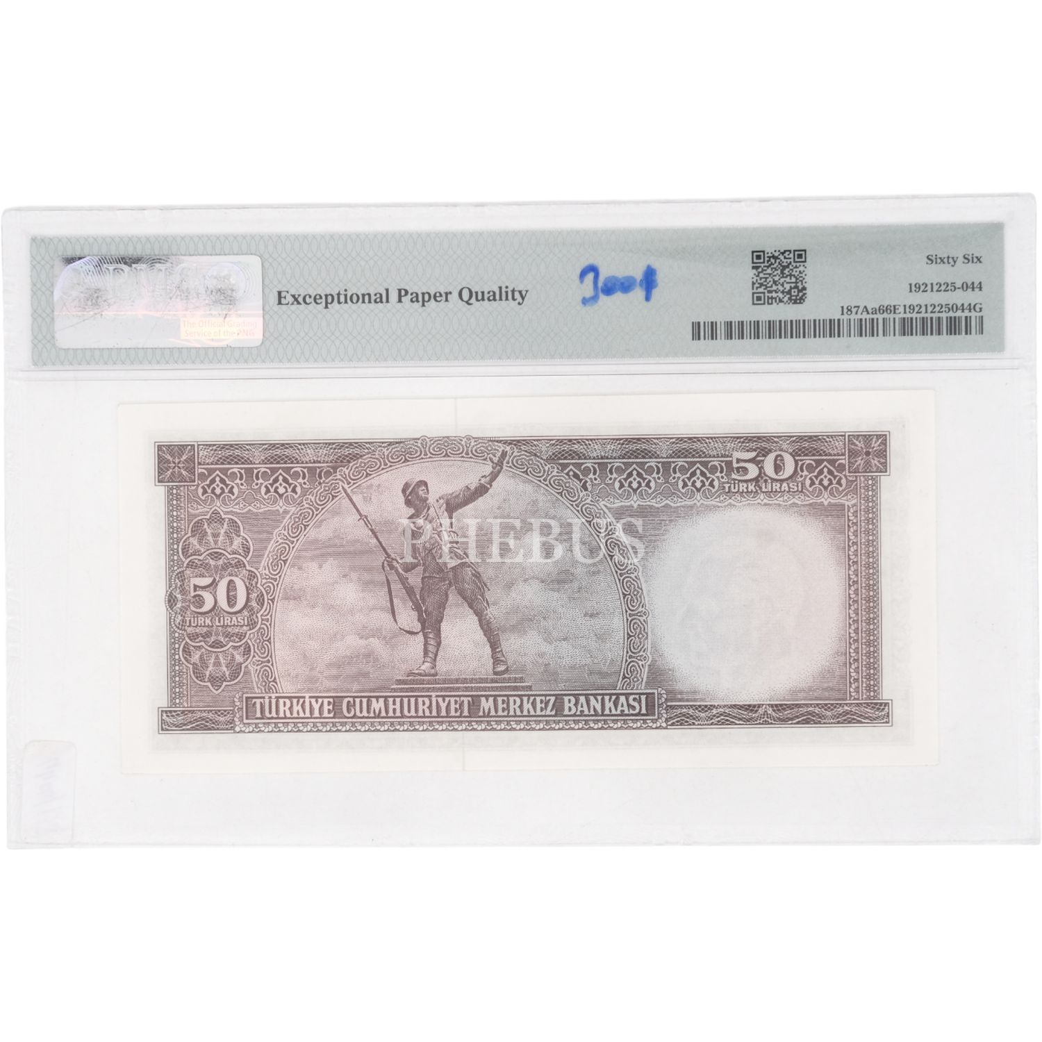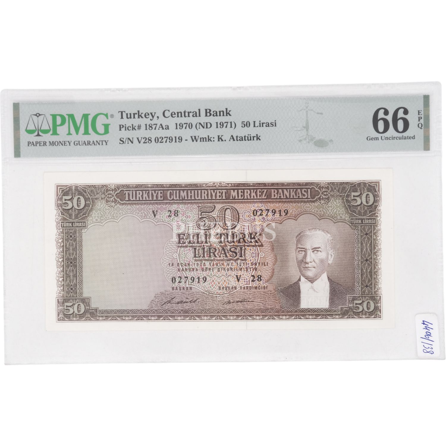 5. EMİSYON 7. TERTİP 50 LİRA SERİ V28 PMG SERTİFİKALI 66 EPQ ÇİL