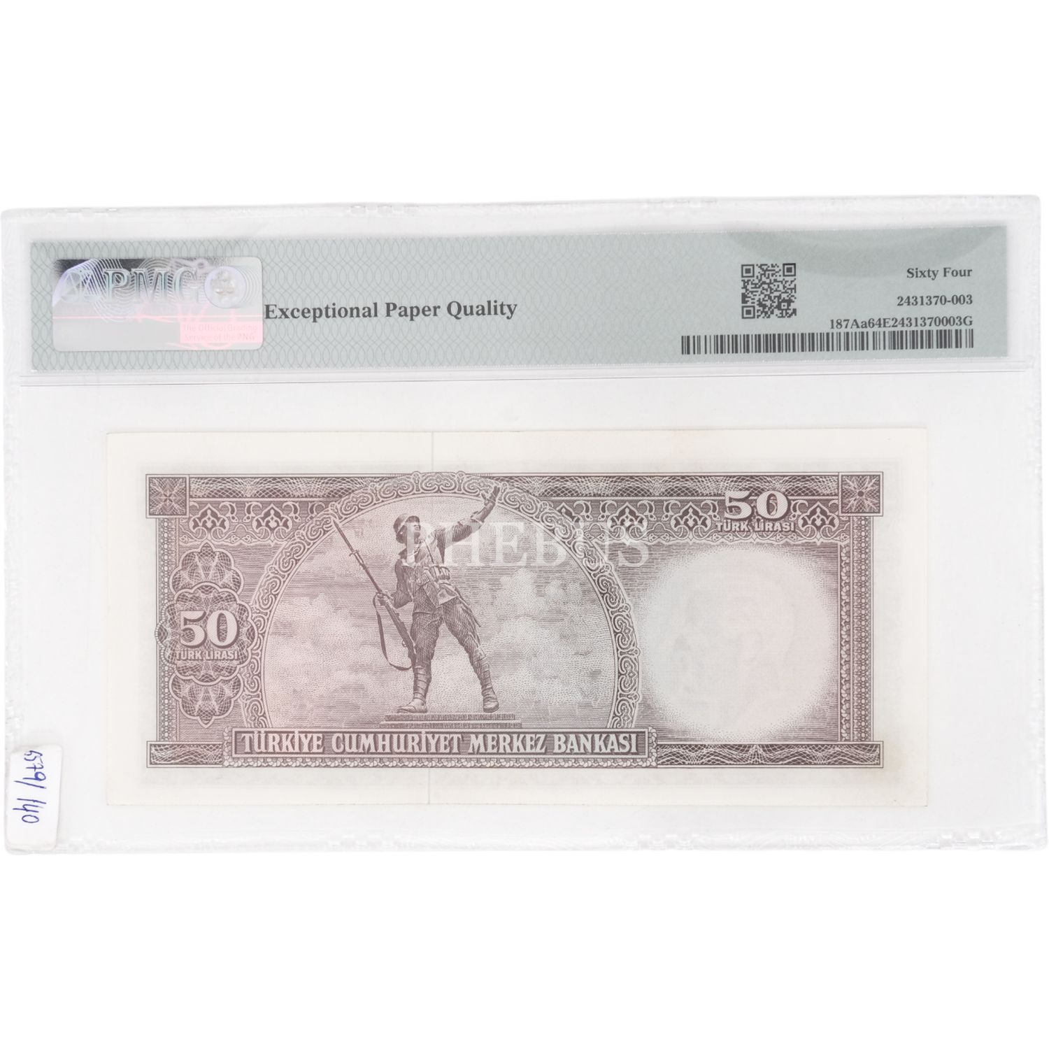 5. EMİSYON 7. TERTİP 50 LİRA SERİ PMG SERTİFİKALI 64 EPQ ÇİL
