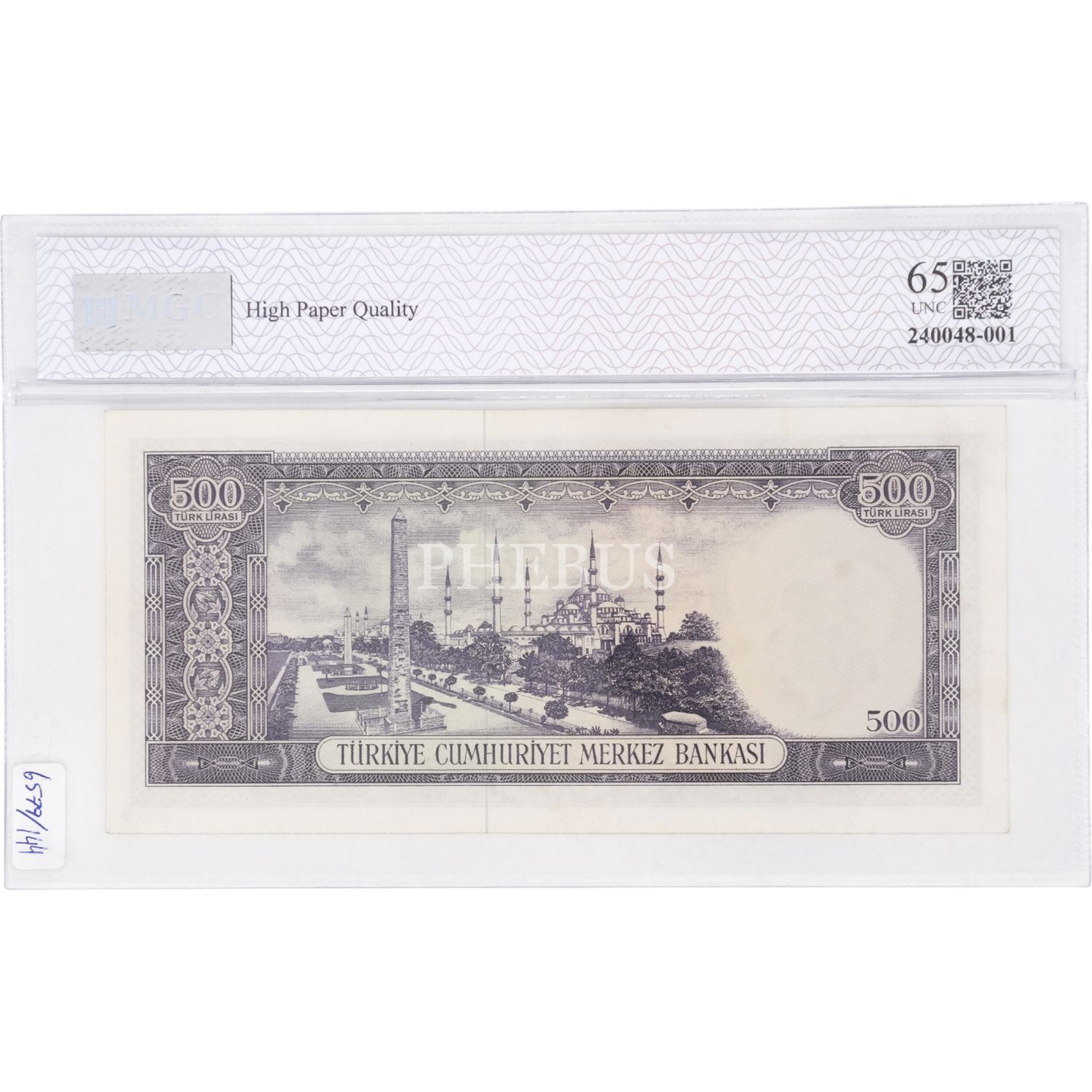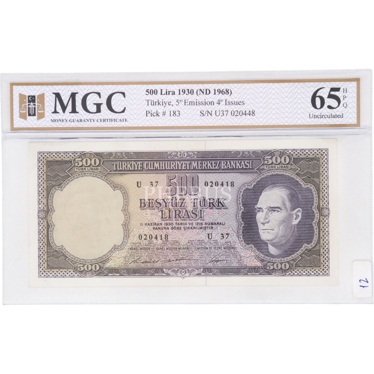 5. EMİSYON 4. TERTİP 500 LİRA SERİ U37 MGC SERTİFİKALI 65 HPQ ÇİL