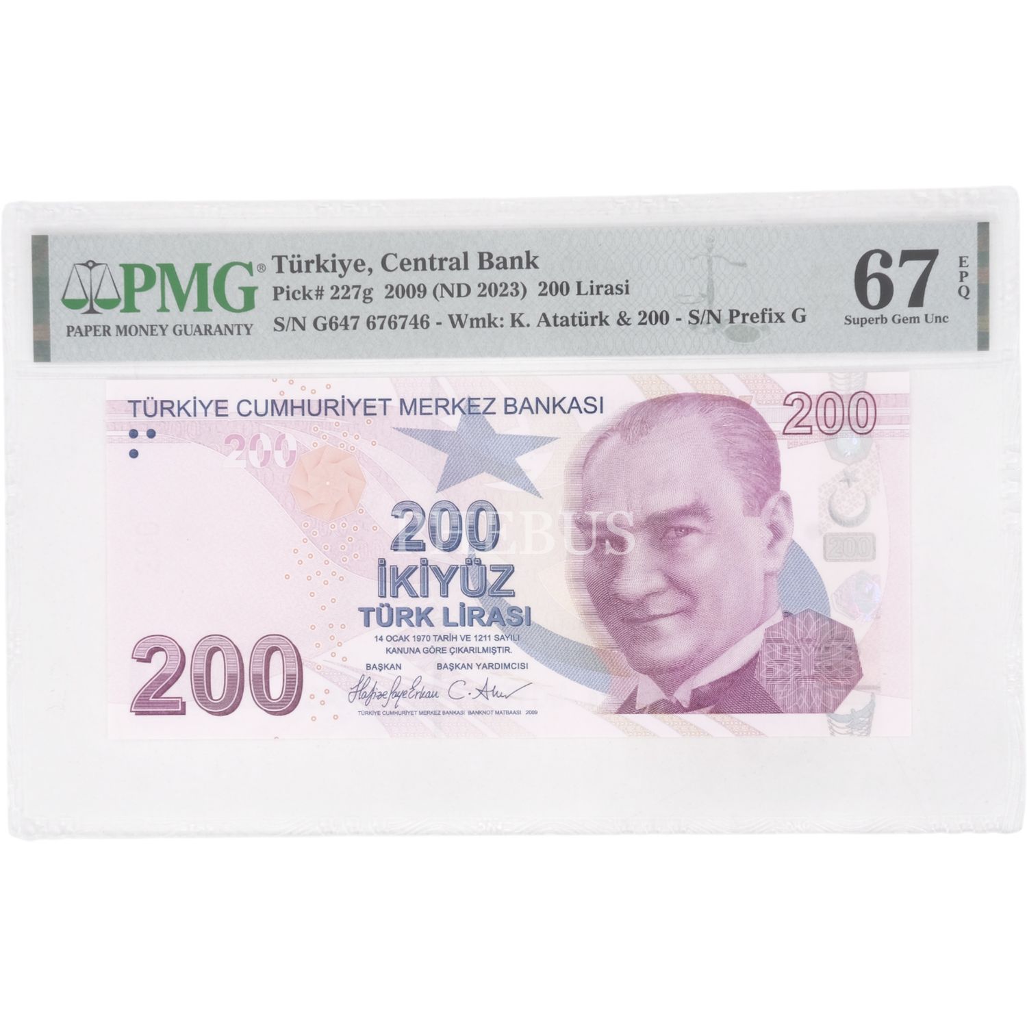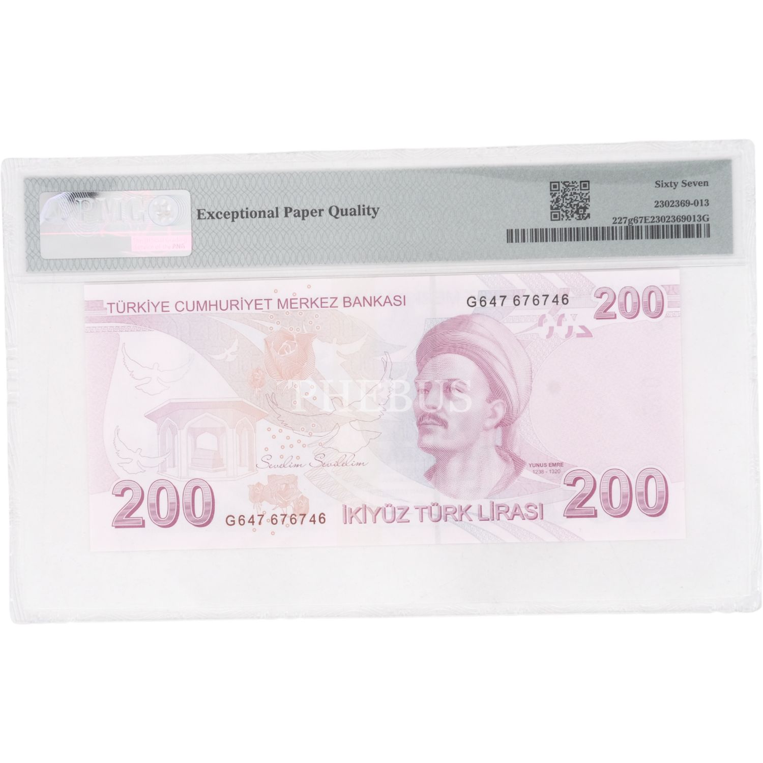 9. EMİSYON 200 LİRA SERİ G647 676 746 BLOK NO KOMPLE RADAR PMG SERTİFİKALI 67 EPQ ÇİL