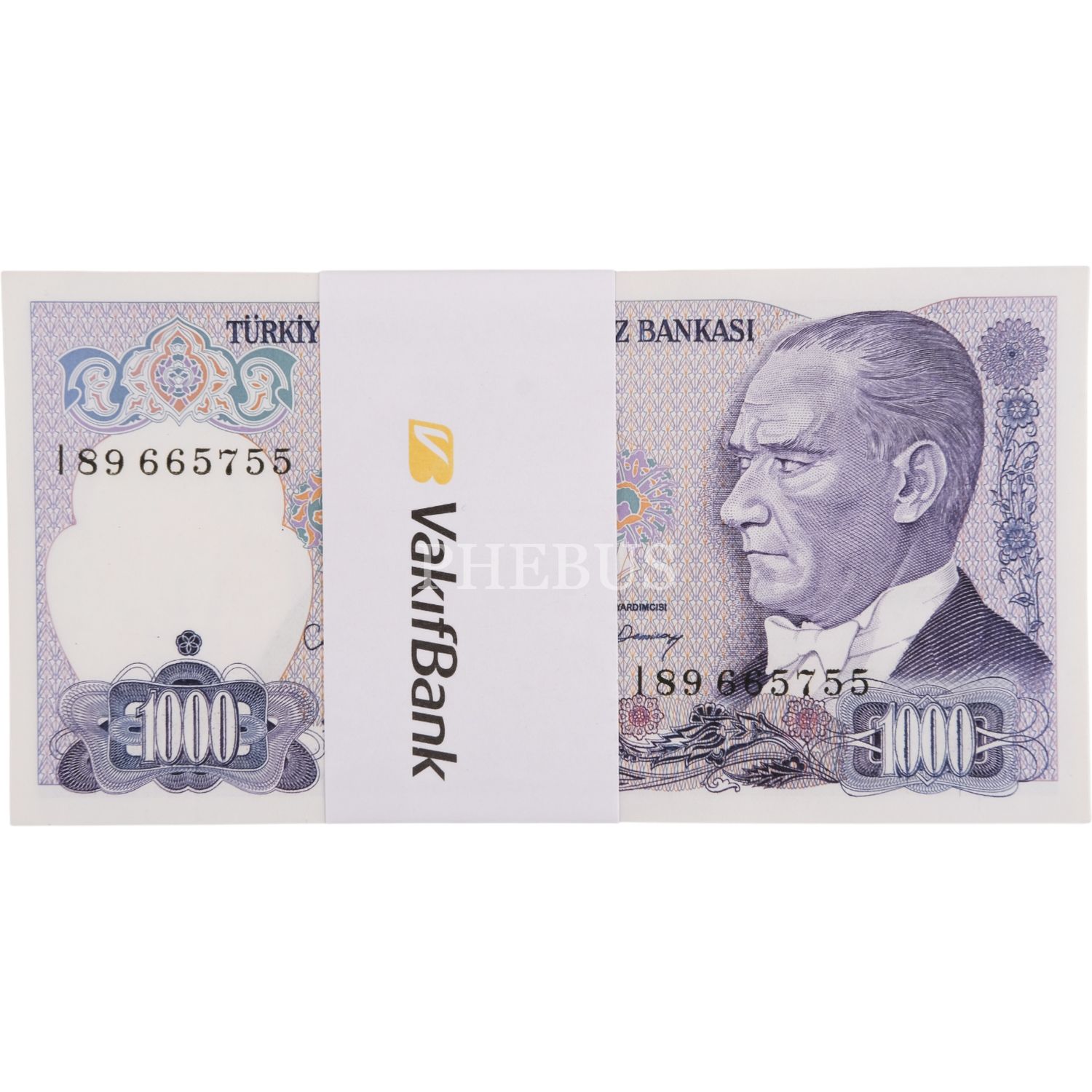 7. EMİSYON 1.000 LİRA SERİ I89 - G73 HARFLERİ KARIŞIK 100 LÜ DESTE ÇİL