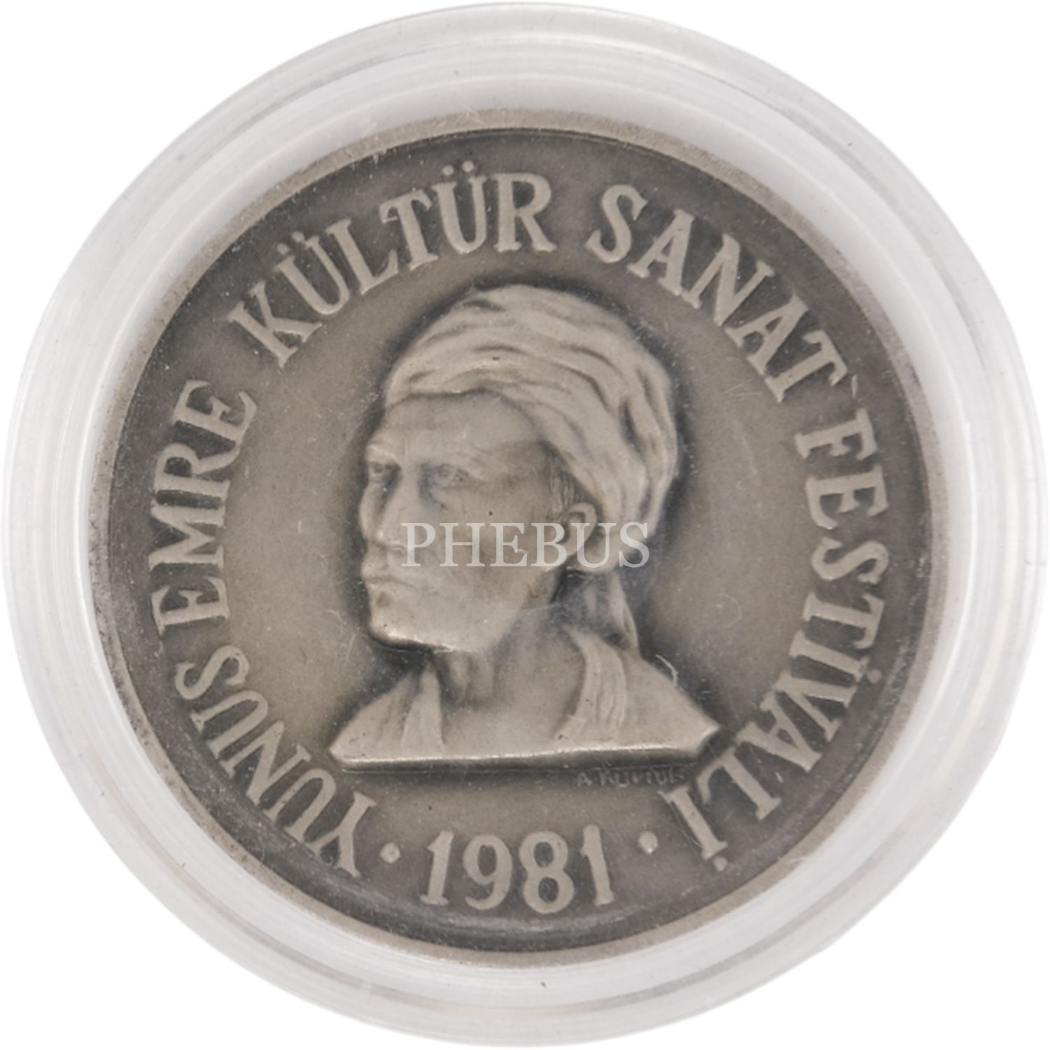 1981 YUNUS EMRE KÜLTÜR VE SANAT YILI OKSİDE GÜMÜŞ DENEME HATIRA ÇİL