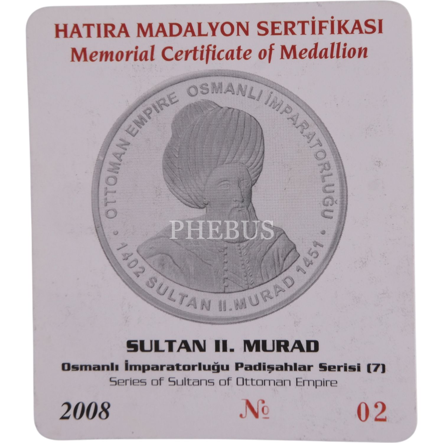 2008 SULTAN II. MURAD GÜMÜŞ HATIRA SERTİFİKALI
