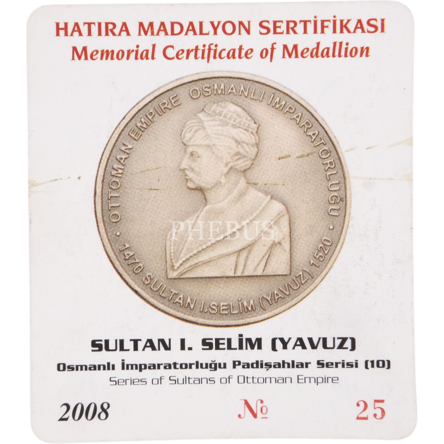 2008 SULTAN I. SELİM (YAVUZ) OKSİDE BRONZ HATIRA SERTİFİKALI