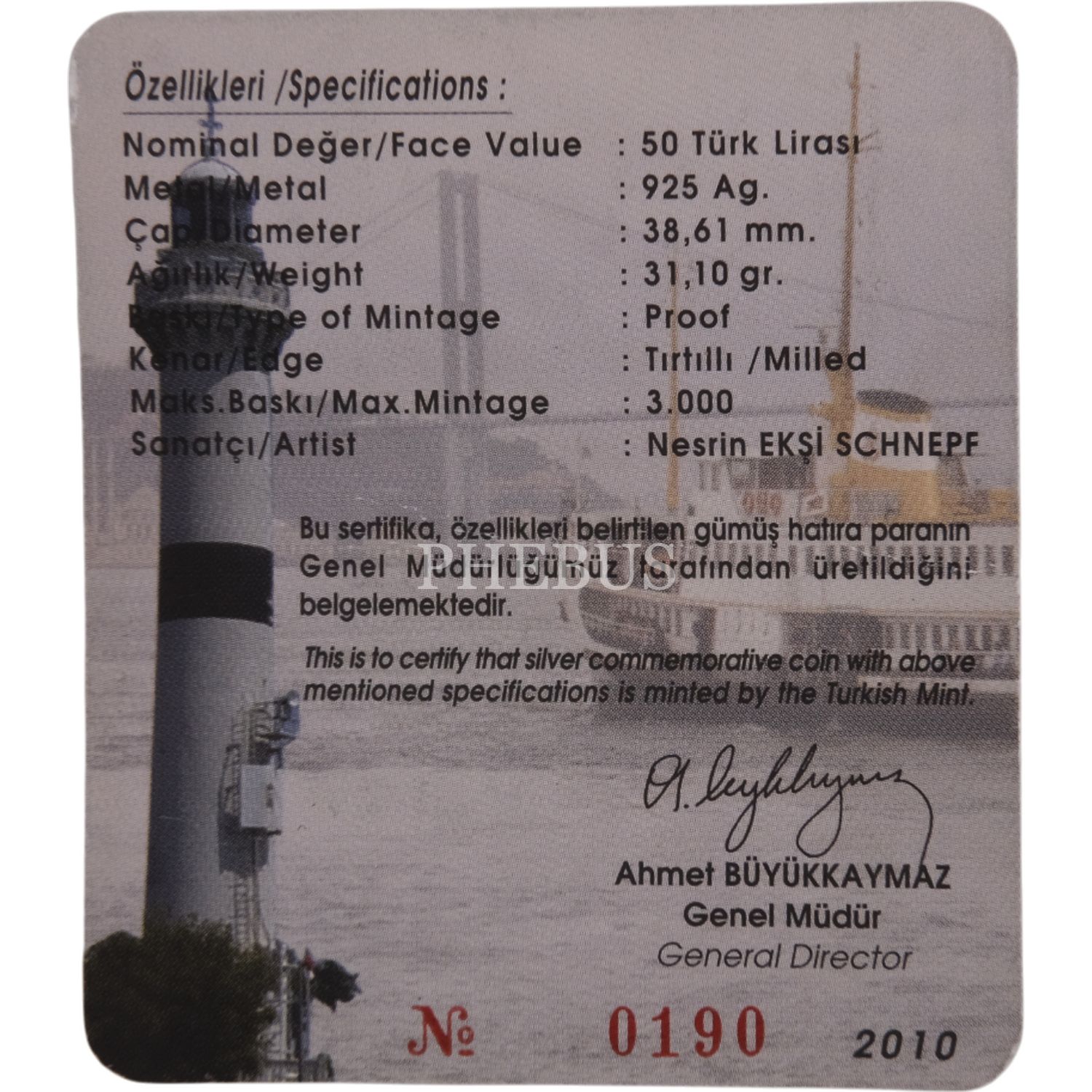 2010 AHIRKAPI FENERİ - FENERLER SERİSİ NO: 2 GÜMÜŞ HATIRA SERTİFİKALI