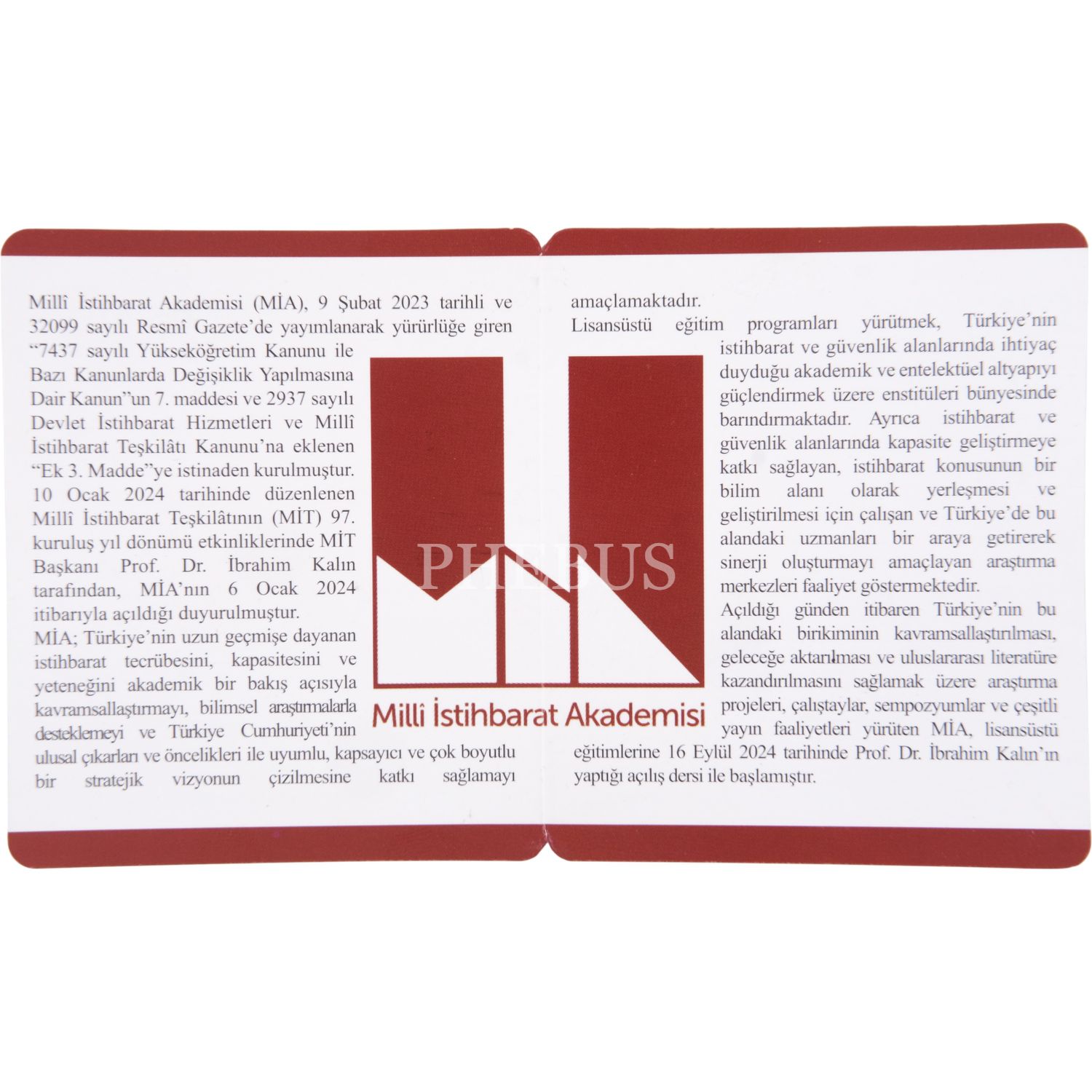 2025 MİLLİ İSTİHBARAT TEŞKİLATI BRONZ HATIRA SERTİFİKALI