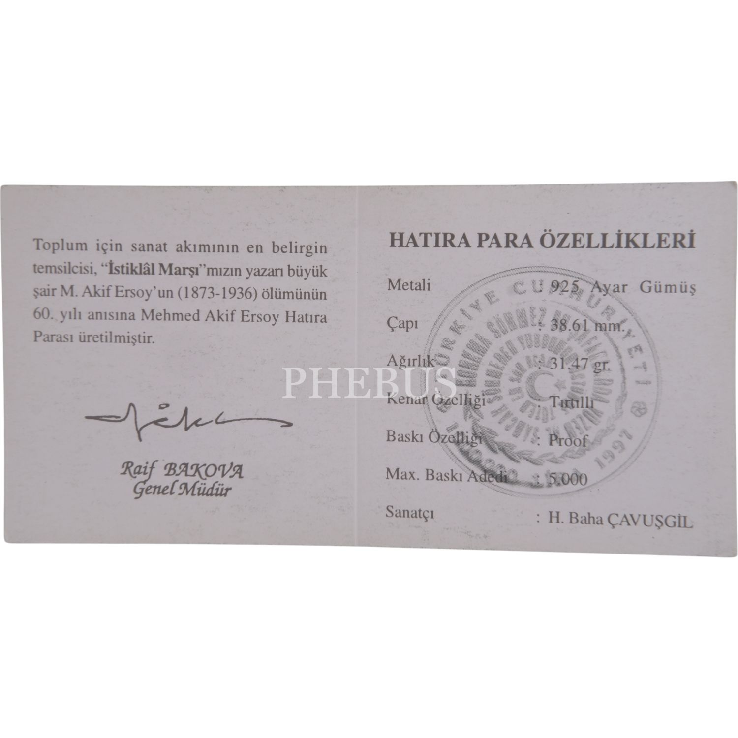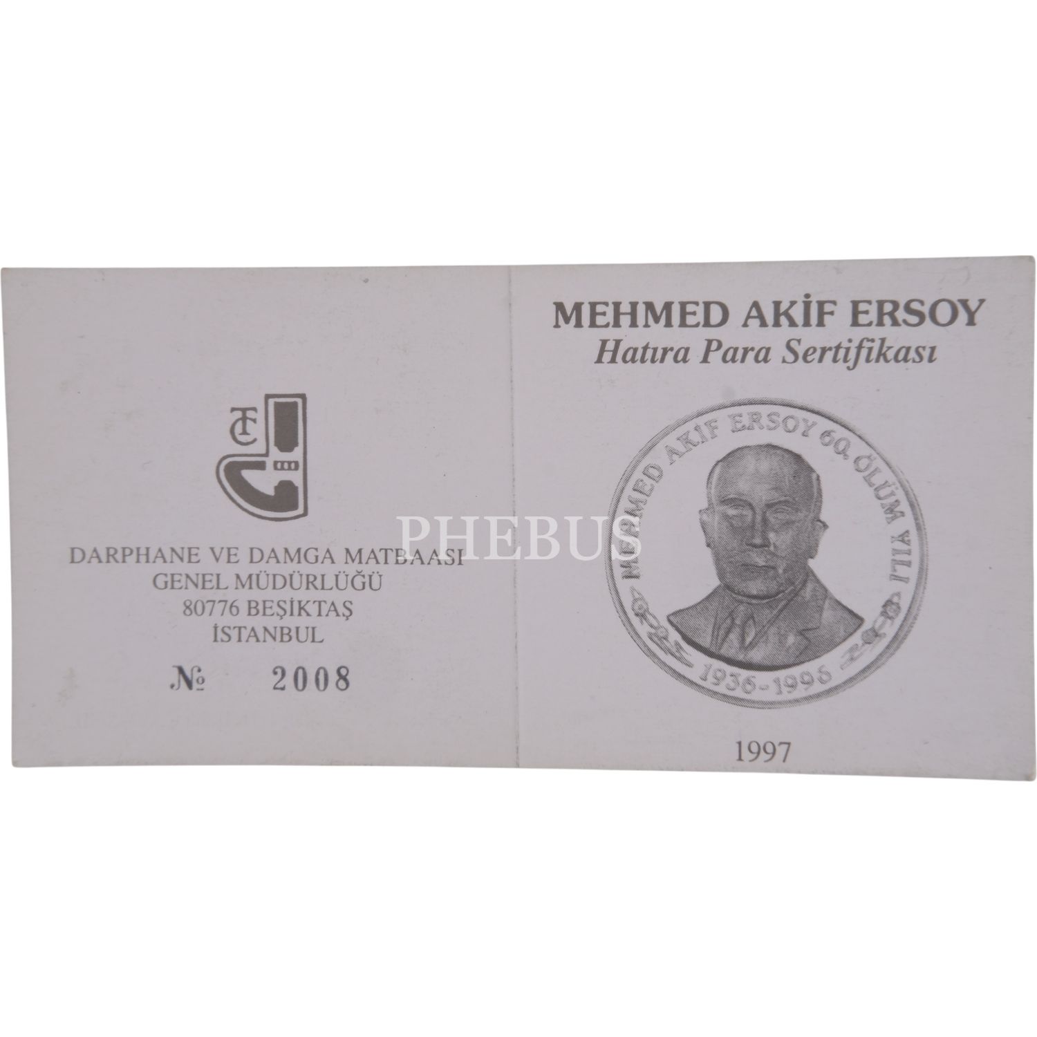 1997 MEHMED AKİF ERSOY 10. ÖLÜM YILI GÜMÜŞ HATIRA SERTİFİKALI