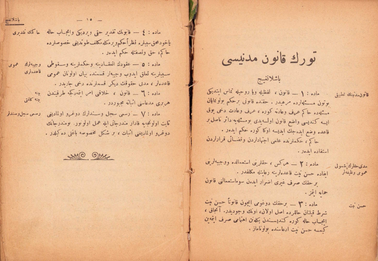 Osmanlıca Türk Kanun-ı Medenisi, Amedi Matbaası, İstanbul, 1926, 261 sayfa, haliyle, 12x18 cm, ÖZEGE; 12259