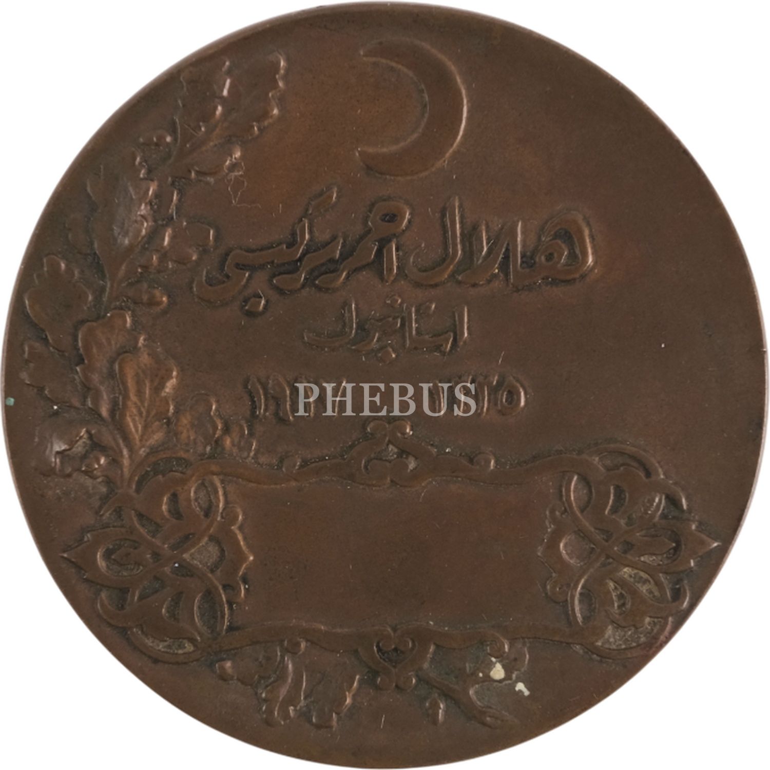 1 Şubat 1917 tarihinde İstanbulda Galatasaray Mektebinin bahçesinde Osmanlı Hilal-i Ahmer Cemiyeti merkezi umumiyesi tarafından açılan Hilal-i Ahmer sergisi için yurtdışında bastırılmış, ön yüzünde İstanbul tasviri altında yaralı asker ve hemşire, diğer yüzünde ise hilal ve hilal altında ´Hilal-i Ahmer Sergisi İstanbul 1335 (1917)´ yazılı nadir hatıra madalya. Çap: 6cm Referans: Osmanlı Madalya ve Nişanları adlı kitap sayfa 329/ Metin Erüreten