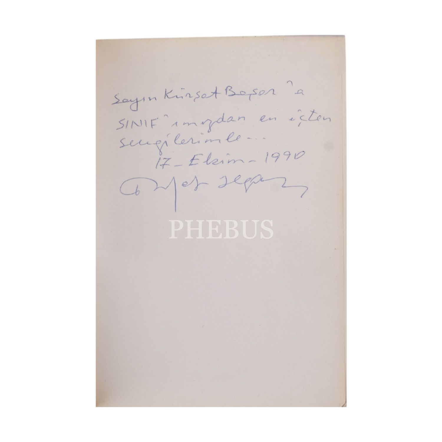 "Sayın Kürşat Başan´a SINIF´ımızdan en içten sevgilerimle" ithafıyla, 17 Ekim 1990 tarihinde imzalanmıştır.