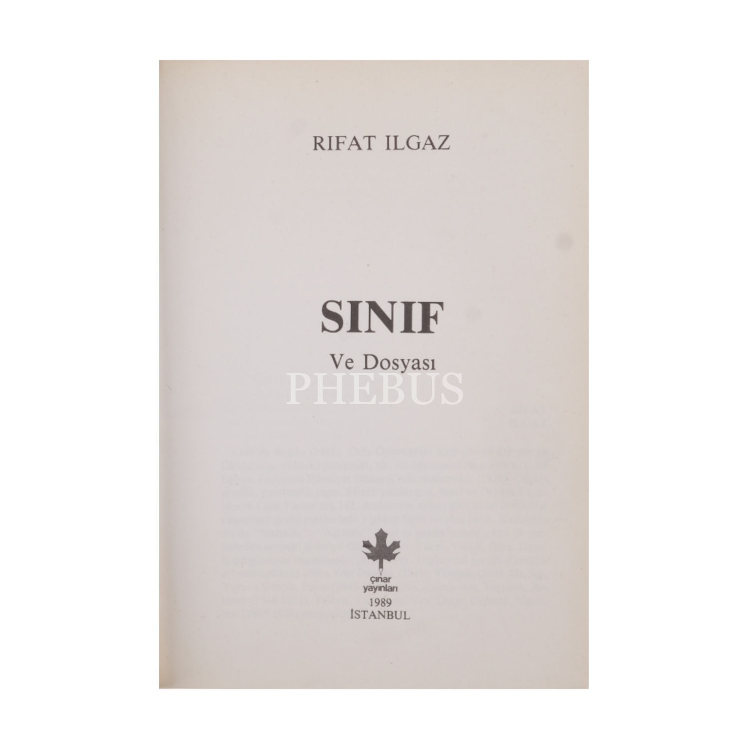 SINIF VE DOSYASI, Rıfat Ilgaz, 1989, Çınar Yayınları, 94 sayfa, 14x20 cm...